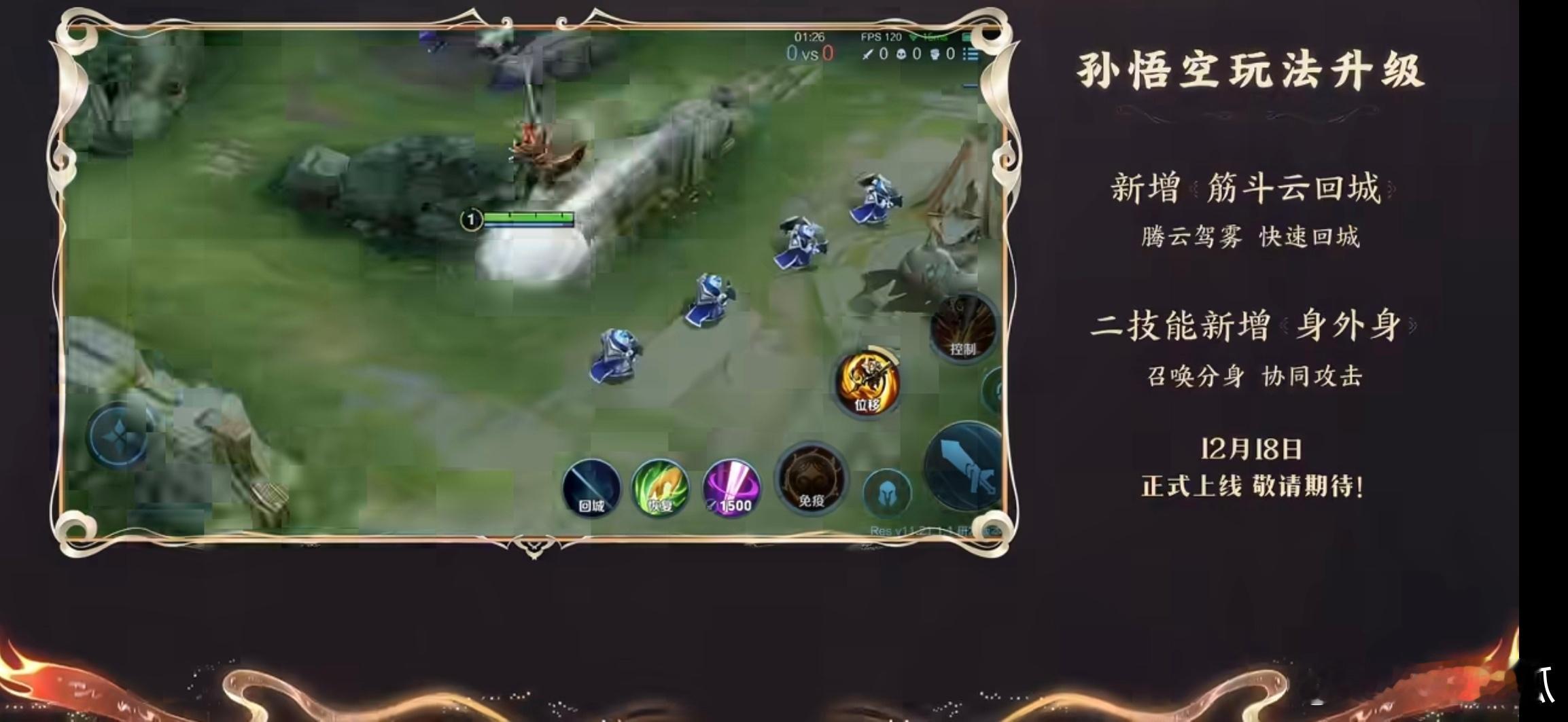 猴子升级:回城加二段筋斗云速返,二技能添召唤分身能力 冲刺伤敌。