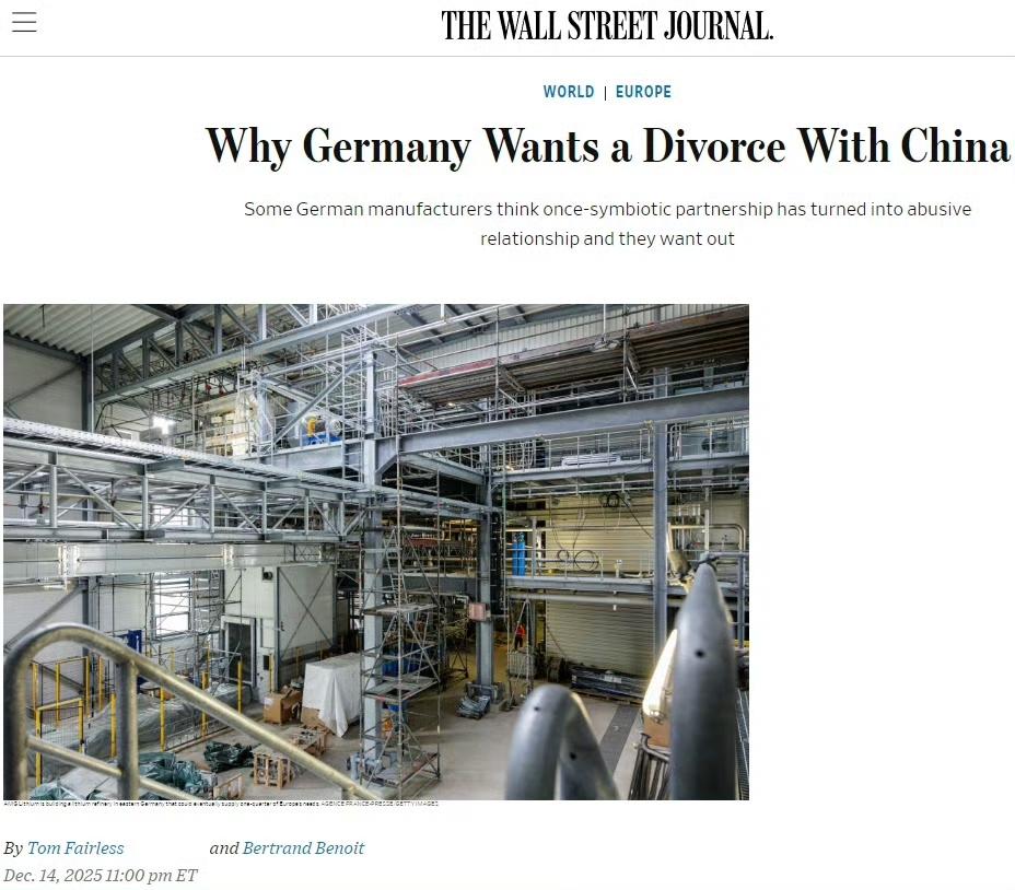 《华尔街日报》报道称,德国计划终止与中国的伙伴关系。 二十多年来,德中关系互利共赢:德国向中国提供技术和设备,中国则利用这些资源为全球生产商品。如今德国对中国的依赖程度降低,德国企业正日益面临更快速、更廉价且技术更先进的中国竞争对手。 德国自中国进口的资本货物首次超过出口,贸易逆差可能达到创纪录的880亿欧元。中国汽车零部件进口持续增长,而德国汽车在中国市场的份额两年内从50%跌至33%。 因此,德国正通过关税、监管壁垒及其他保护主义措施开始保护本国产业。 这就是国际贸易的本质,当欧美日韩利用中国的廉价劳动力和资源生产商品,高价卖给中国和全球时,中国就是好的合作伙伴。当中国开始争夺发达国家的市场,挤压他们的商业空间时,中国就变成了恶龙。