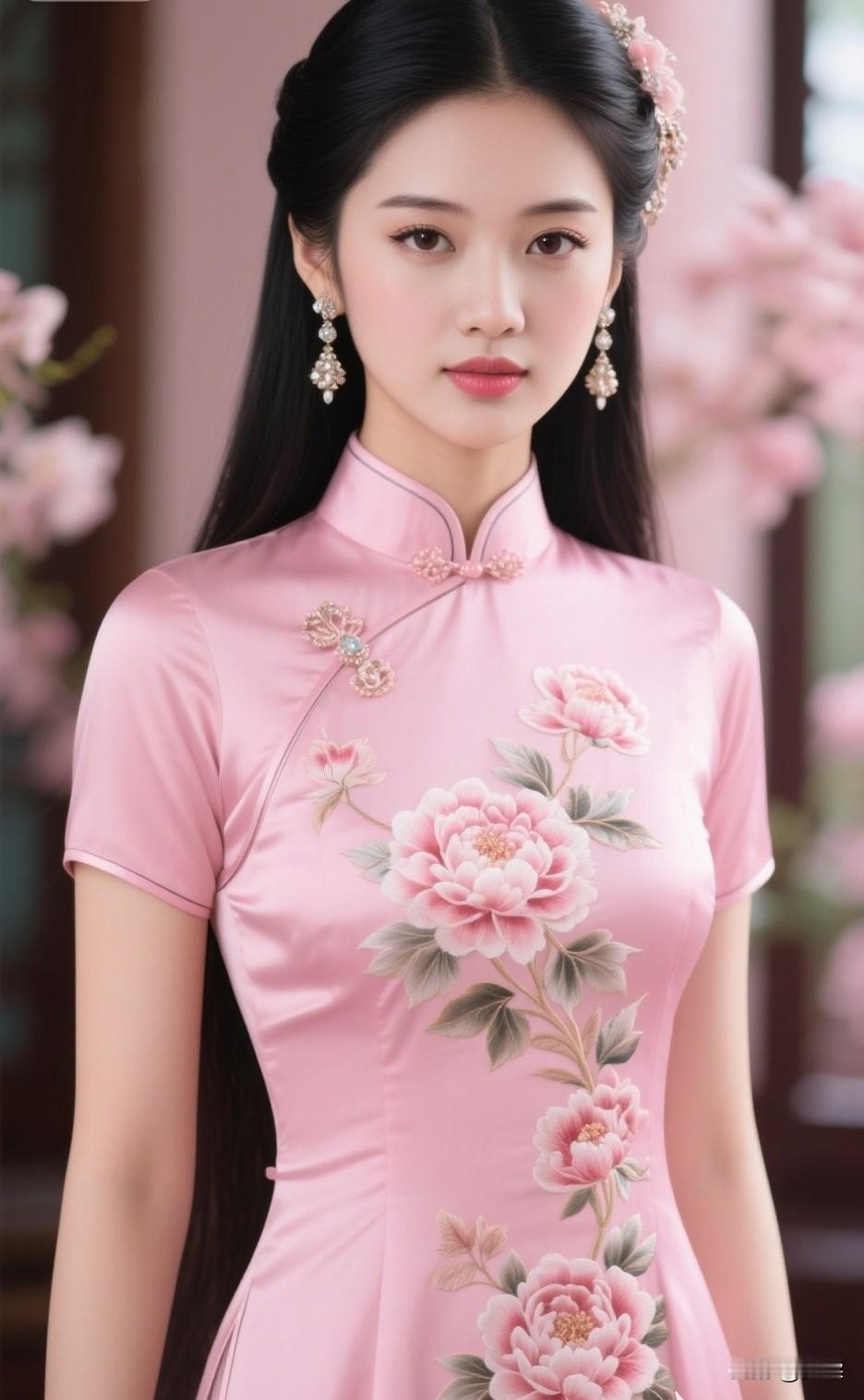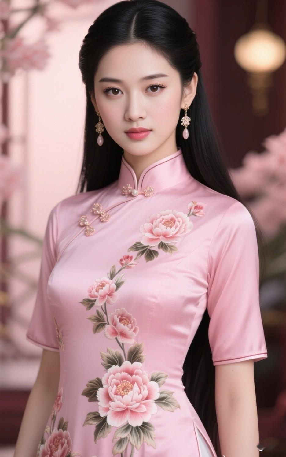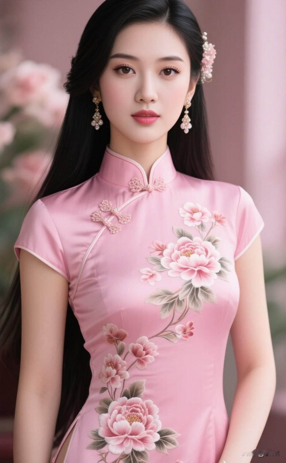怎么样选择旗袍粉红色丝绸旗袍,你们觉得可以吗?