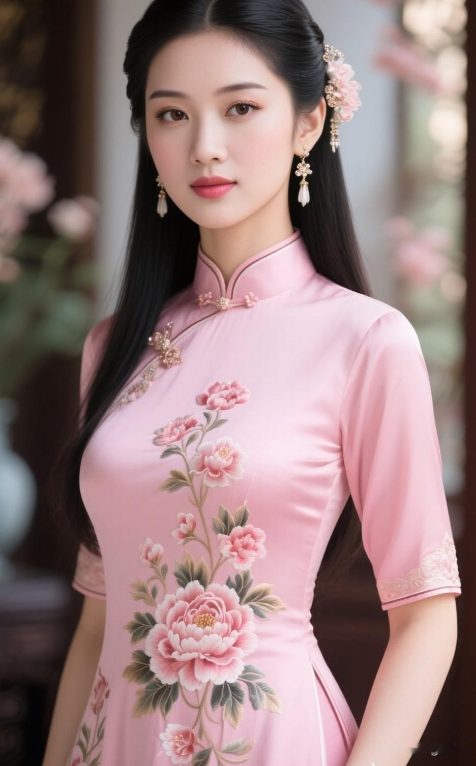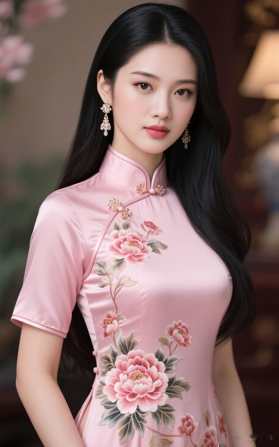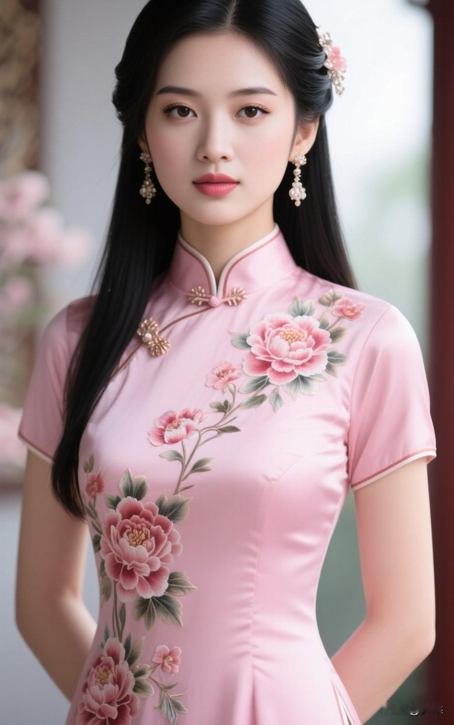 怎么样选择旗袍粉红色丝绸旗袍,你们觉得可以吗?