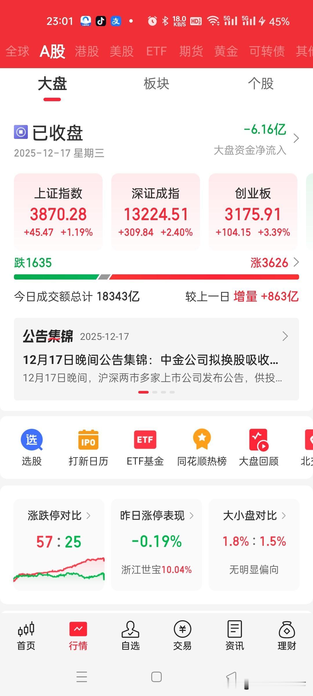 午夜看盘,石油涨幅1.5%一概近几日颓势。黄金强势逼近新高。道指高开高走。纳指高开。标普低开。今夜大盘无虞,今天A股强势反弹,有评论长了指数,个股涨多跌少。3626比1625.成交比前日放量863亿,形势一派大好。 大A的股民们可以安心睡大觉了。