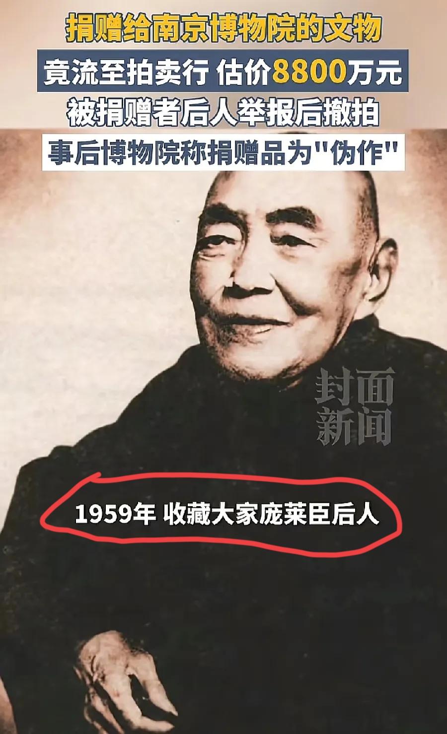 南博这吃相 属实有些难看了。 这哪里仅仅是鉴定真伪的技术博弈,分明是权力对契约精神的一次降维打击。 庞莱臣,那是民国收藏界的泰山北斗,人家后人满怀热忱捐出的家底,到了你们手里,想处理就处理,连个招呼都不打? 最魔幻的是,一边给藏品贴上“赝品”的封条,转头却送上了拍卖桌,估出一个让人咋舌的天价。 既然是“假”的,何以此价流通?既然敢卖,为何去向成谜? 这算盘珠子,简直崩到了每一个潜在捐赠者的脸上。 本来是守护文脉的圣地,硬生生演成了一出“罗生门”。 信任这东西,建起来如垒土,塌下来只需一瞬。 经此一役,以后谁还敢把传家宝托付给公家? 寒了的人心,再想捂热,难如登天。