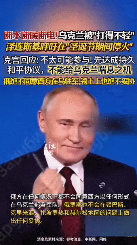 2025年12月17日,泽连斯基提出圣诞节停火,这个时间选得很巧,正值西方过节期间,也是乌克兰民众日子最难熬的时候,哈尔科夫、第聂伯罗等地每天停电超过十二小时,数百万人没有水和暖气可用,联合国称这是人道灾难,泽连斯基这一举动表面上为民众考虑,实际更想借助西方媒体发声,把俄罗斯塑造成不愿停手的坏人,但克里姆林宫并未上当,佩斯科夫直接回应说,停火不等于和平,乌方只是想借机休整补充装备。 俄罗斯这次确实不是闹情绪,而是已经算得很清楚,从夏天乌军突破扎波罗热防线后,俄军就转为收缩防守,冬天原本是作战停歇的季节,但美国那批坦克和装甲车正通过铁路不断送往前方,俄方认为一旦停火,这些武器就会全部部署到位,到时候他们打起来会更困难,再加上普京在最近会议中再次强调,顿巴斯、克里米亚那些地区已经是“合法领土”,根本没有谈判的余地,副外长还公开表示,如果北约敢在乌克兰部署中程导弹,俄方就要采取不对称反击措施,这些话听起来像是威胁,其实他们早就着手准备了。 西方那边嘴上都说支持停火,手底下却一点不松劲,美国同一天批了25亿军援,爱国者导弹和远程火箭炮全都安排上了,欧盟冯德莱恩喊着要谈,可波兰和波罗的海国家死活不同意,非要打到赢为止,德国法国倒是怕能源被反噬,内部吵成一团,中国特使李辉跑前跑后,提议先换战俘作为第一步,结果两边都不理睬,乌克兰觉得换俘等于承认俄占区合法,俄罗斯又觉得这事解决不了核心问题,中立国想帮忙,最后连个说话的地方都没有。 现在这场仗打得越来越不像打仗了,乌克兰经济快要垮掉,GDP预计会缩水28%,物价涨得让人受不了,俄罗斯那边日子也不好过,但他们把能源当作武器,专门去炸电网,逼着西方把援助从子弹换成发电机,老百姓生活苦得没法形容,死的人已经超过一万二,三百万人逃离家园,像马里乌波尔这样的城市医院都瘫痪了,每天都有冻死的人,这不是什么英雄主义的战争,就是两个国家拿老百姓当筹码,看谁能撑到明年春天。 回看2022年马里乌波尔围城战,那时还能感受到大决战的气氛,如今情况完全不同了,没人能够发动决定性进攻,但双方都不愿意退让,无人机天天轰炸电厂,乌克兰这边修不好设施,俄罗斯那边也拦不住西欧悄悄向乌克兰输电,这场战争已经变成比拼哪一方的基础设施更经得起消耗,说实话,这种打法比正面交锋更折磨人,因为痛苦是慢慢积累的,一天天持续下去,谁都没法躲开。 不知道您对此有什么看法呢?欢迎在下方评论区留下你的想法,喜欢文章记得点赞关注我们下期再见。