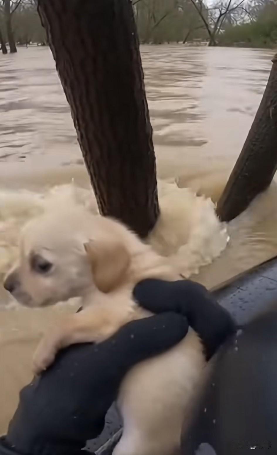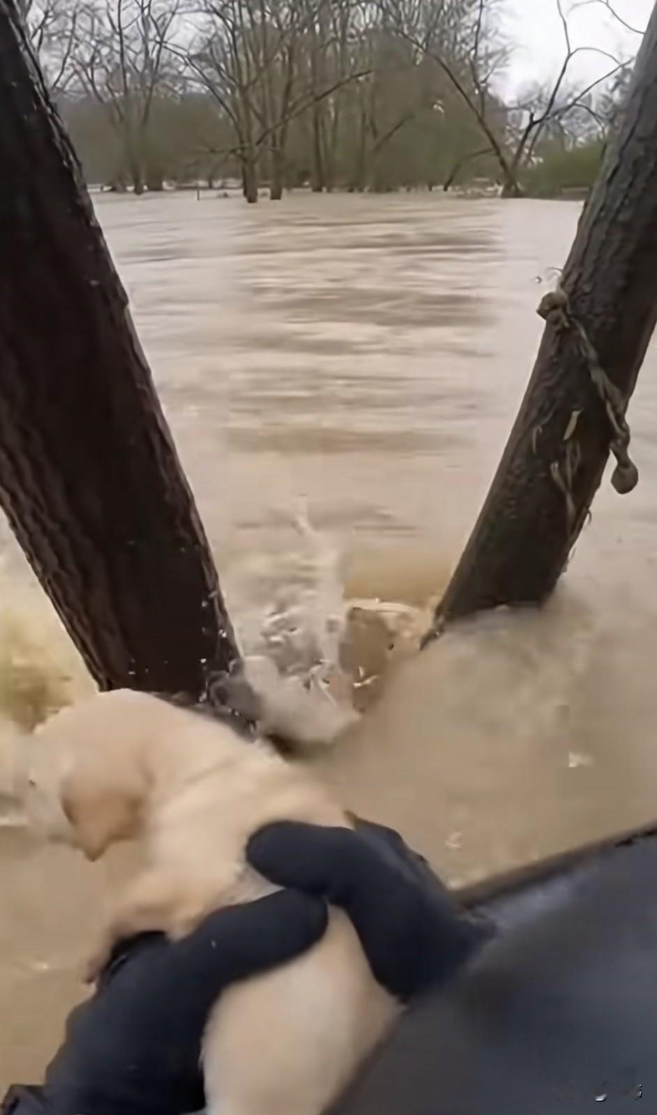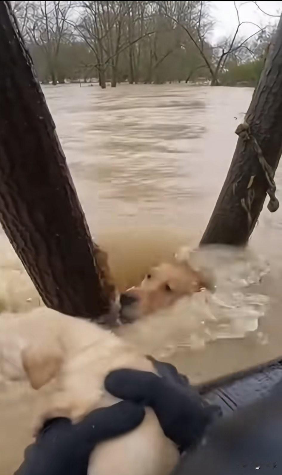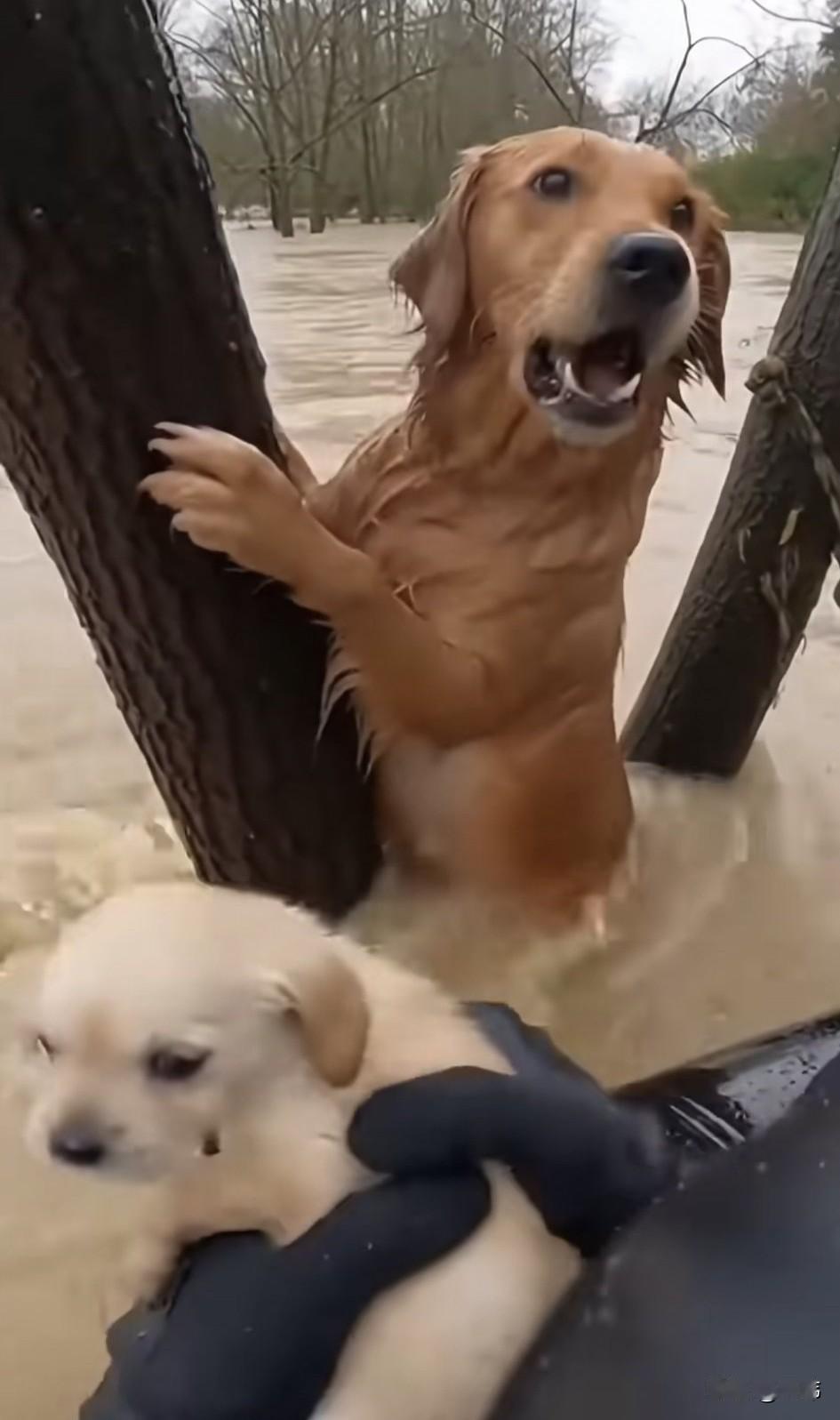 泪目了!一只流浪狗妈妈的家被洪水淹没了,它拼着命才叼着狗宝宝爬上一棵枯木,长时间