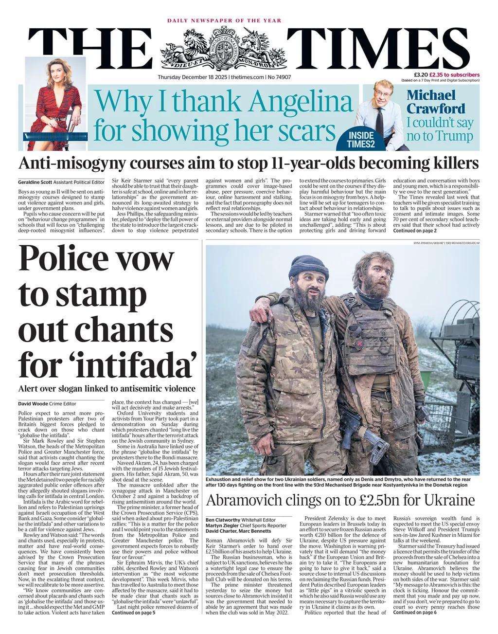 《泰晤士报》称,英国警方将在澳大利亚邦迪海滩袭击事件后试图制止呼喊或口头号召极端主义的言论。 在英国最大的两支警察部队承诺打击那些高呼“将起义全球化”的人之后,警方预计将逮捕更多亲巴勒斯坦抗议者。 伦敦警察厅厅长马克·罗利爵士和大曼彻斯特警察局局长斯蒂芬·沃森爵士表示,在近期针对犹太人的恐怖袭击之后,那些被抓到高呼该口号的活动人士将面临逮捕。 在他们发表罕见的联合声明数小时后,伦敦警察厅在伦敦市中心拘留了两人,他们涉嫌呼喊涉及“起义”的口号,被指控犯有种族加重情节的公共秩序罪。 “起义”在阿拉伯语中意为反抗,指巴勒斯坦人反抗以色列对约旦河西岸和加沙地带的占领。一些人认为“将起义全球化”及其他变体是对犹太人的暴力呼吁。 罗利和沃森表示:“所使用的言辞和口号,尤其是在抗议活动中,很重要且会产生实际后果。 皇家检察署一直向我们建议,许多在犹太社区引发恐惧的表述未达到起诉门槛。现在,在威胁不断升级的背景下,我们将重新调整以更加果断。 “我们知道社区对诸如‘将起义全球化’这样的标语牌和口号感到担忧,那些使用它的人应该料到伦敦警察厅和大曼彻斯特警察局会采取行动。