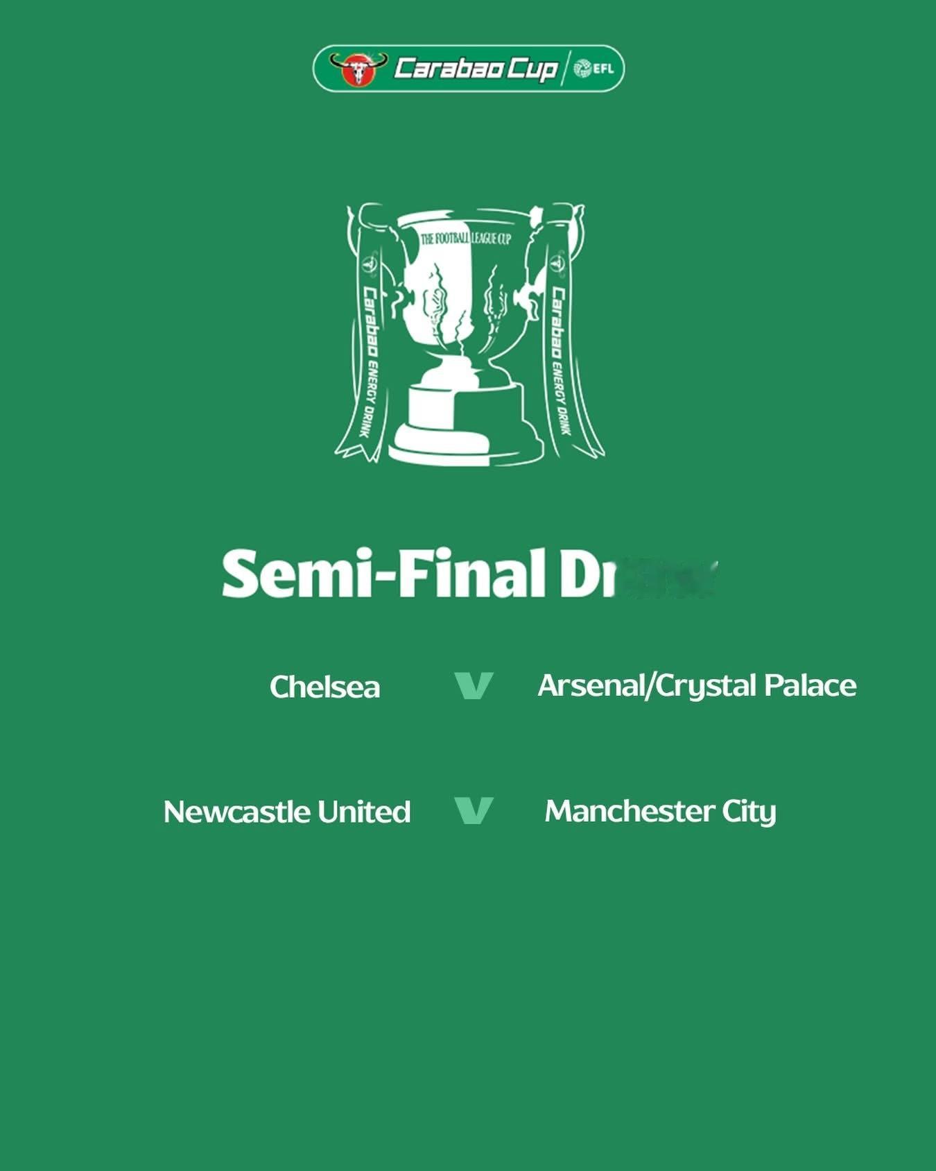 車路士喺前晚依靠加拿祖梅開二度,協助球隊擊敗加迪夫城殺入準決賽後,今日凌晨再有兩支四強球隊誕生。八屆冠軍曼城面對賓福特,過去五次交手全部取勝嘅佢哋今仗依然係最後贏家。聯賽首循環贏2-1嘅佢哋,尋晚就有查基同沙雲奴入波,前者更係自上一圈贏史雲斯後再有「士哥」,即使「收埋」夏蘭特都照樣無問題。紐卡素就險勝富咸晉級,聯賽首循環佢哋贏2-1,今次都係贏2-1。李維士美利(Lewis Miley)喺補時階段接應東拿利嘅角球頂入絕殺,準決賽將會惡鬥曼城。英格蘭聯賽盃1/4決(第五圈)賽賽事賽果-加迪夫城1-3 車路士曼城2-0 賓福特紐卡素2-1 富咸阿仙奴🆚水晶宮(稍後時間進行) 🏴🏆