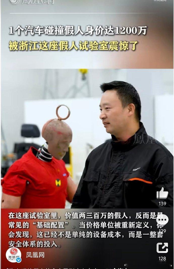 1个汽车碰撞假人身价达1200万 之前就听说过碰撞假人非常贵,但没想到居然可以这么贵假人需要全真模拟人体,需要得到碰撞过程中身体每一个部位的受损情况,因此一个假人身上就需要上百个高精度传感器,虽然假人可以重复利用,但它参与的全是硬核碰撞,损坏率也很高。安全是第一,只要能让后期产品保护乘客,前期再多的投入也值得。汽车汽场全开