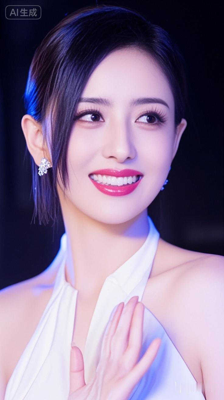 优雅白裙,甜美笑容,闪耀耳环,完美女神!💖✨
