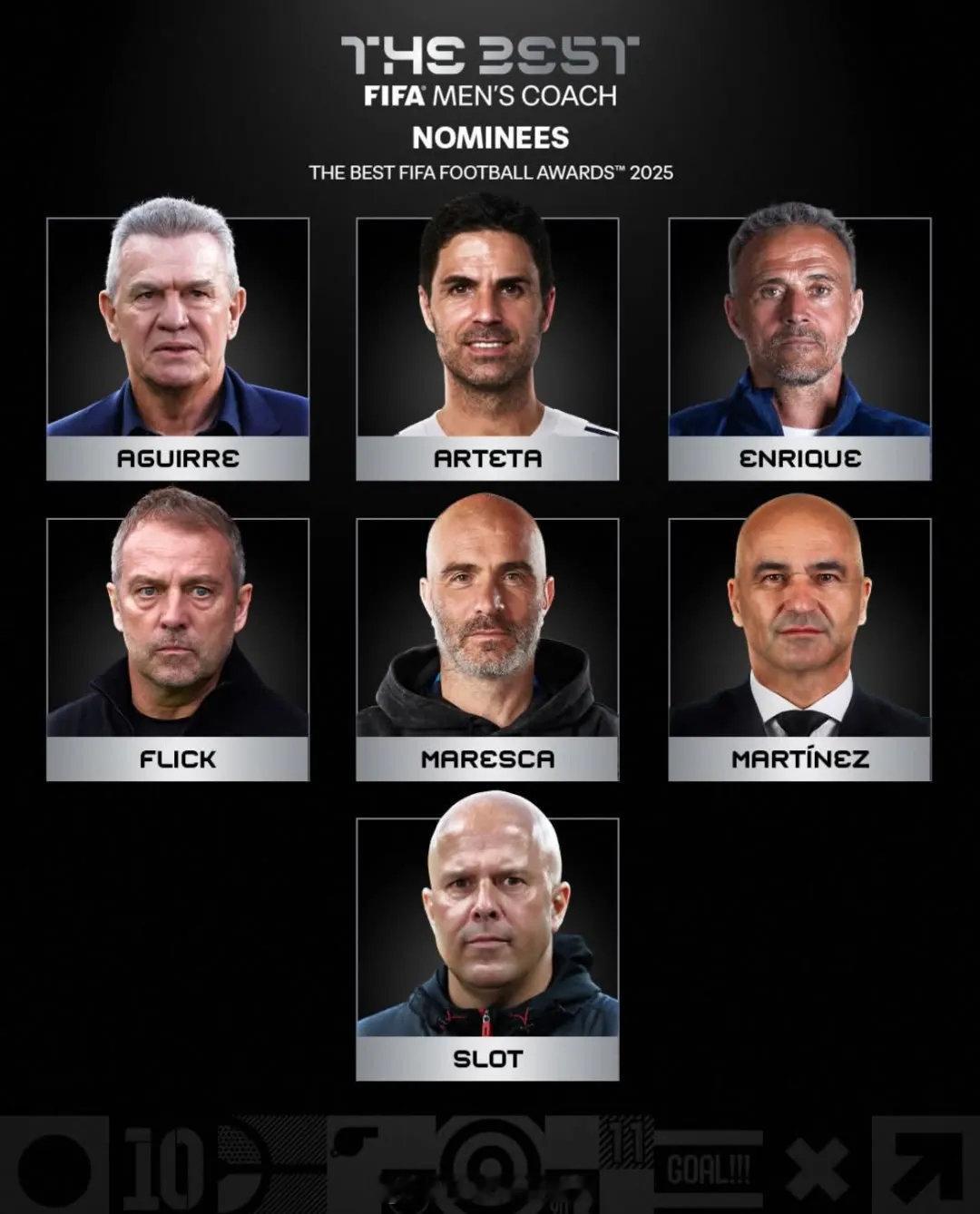 恩里克荣膺FIFA年度最佳男足主帅奖,而阿森纳主帅阿尔特塔也成功入围了候选名单。