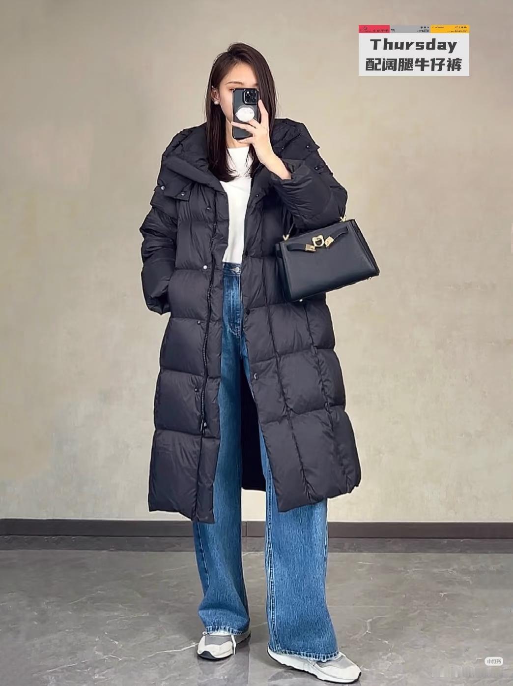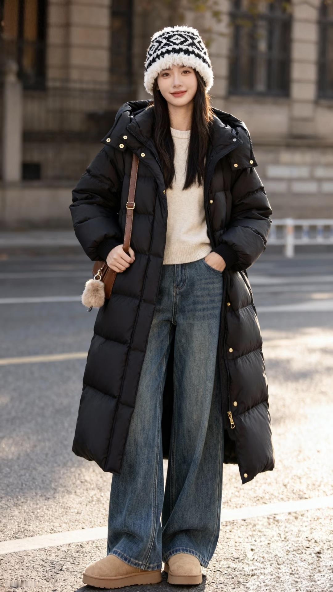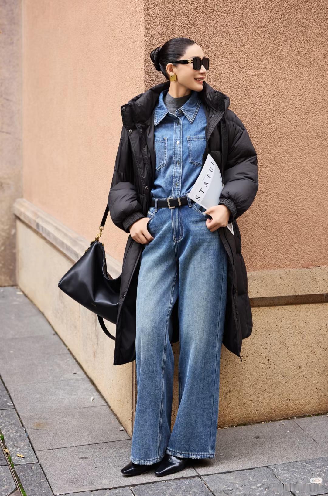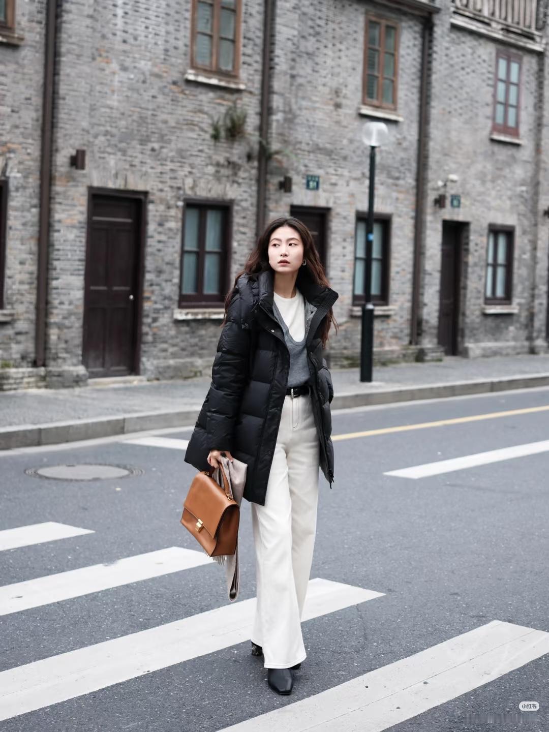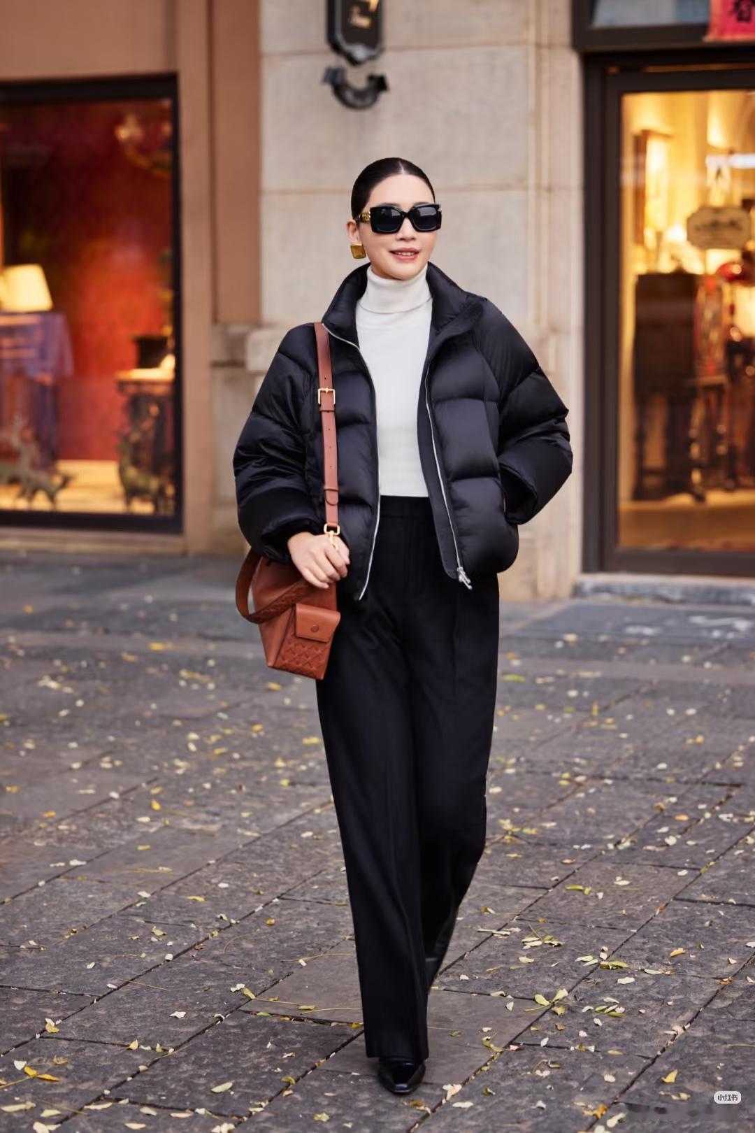 四五十岁女性冬季穿黑色羽绒服,只要掌握这三点,造型好看时髦又保暖。 首先,选对适合的版型和长度 黑色羽绒服有不同的版型和长度,如直筒、收腰、宽松以及短款、中款、中长、长款等,不同的款式适合不同身材,可以根据个人自身条件选择。 对于普通四五十岁女性,建议选择直筒版型不挑身材,长度过臀到大腿中部的款式,或长度到膝盖左右的中长款,可以很好包容腰腹部或胯宽腿粗的缺陷,适合大部分人。而短款和长款更挑身材,如果穿不好,容易暴露身体缺陷,或显臃肿。 其次,选对适合的下装及鞋子搭配 选择裤子搭配时,可以根据黑色羽绒服的款式,选择适合的裤子及鞋子搭配,穿出风格一致的美感。 比如黑色短羽绒服,选择高腰阔腿裤搭配,不仅可以抬高腰线,遮掩腿部缺陷,还能让双腿看上去又长又直。再搭配存在感强的厚底老爹鞋,平衡阔腿裤的大量感,打造出休闲松弛显身高造型。 如果是中长款羽绒服,选择平脚面的直筒裤搭配,再穿上一双中低跟皮鞋,则呈现出稳重不失休闲气质。要是裤子选择九分烟管直筒裤,搭配一双中高跟短靴,造型利落又显瘦。 最后,注意内搭选择,避免沉闷老气 黑色羽绒服颜色偏深,在选择内搭时,建议选择浅色或低饱和度有彩色内搭,可以提亮造型,打破沉闷。 比如,白色、米色、卡其、浅灰、牛仔蓝等颜色内搭,能提亮肤色又不会过于张扬。避免黑色羽绒服选择深色内搭,再搭配深色裤子,全身深色搭配,容易穿出沉闷老气感。 所以说,四五十岁女性冬季要想穿好黑色羽绒服,只要注意版型选择,用内搭提亮肤色,再搭配合适的裤子和鞋子,轻松穿出好看又保暖造型。