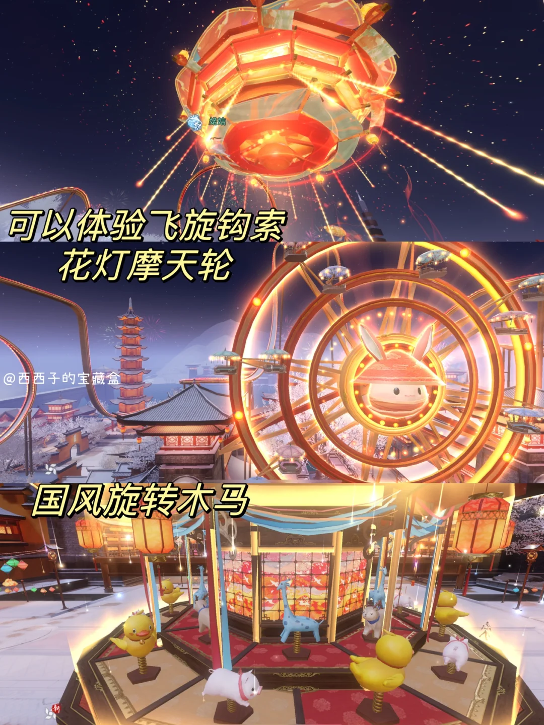 除了游乐设施,还有骑竹马、花车游街、气球飞天等玩法…
