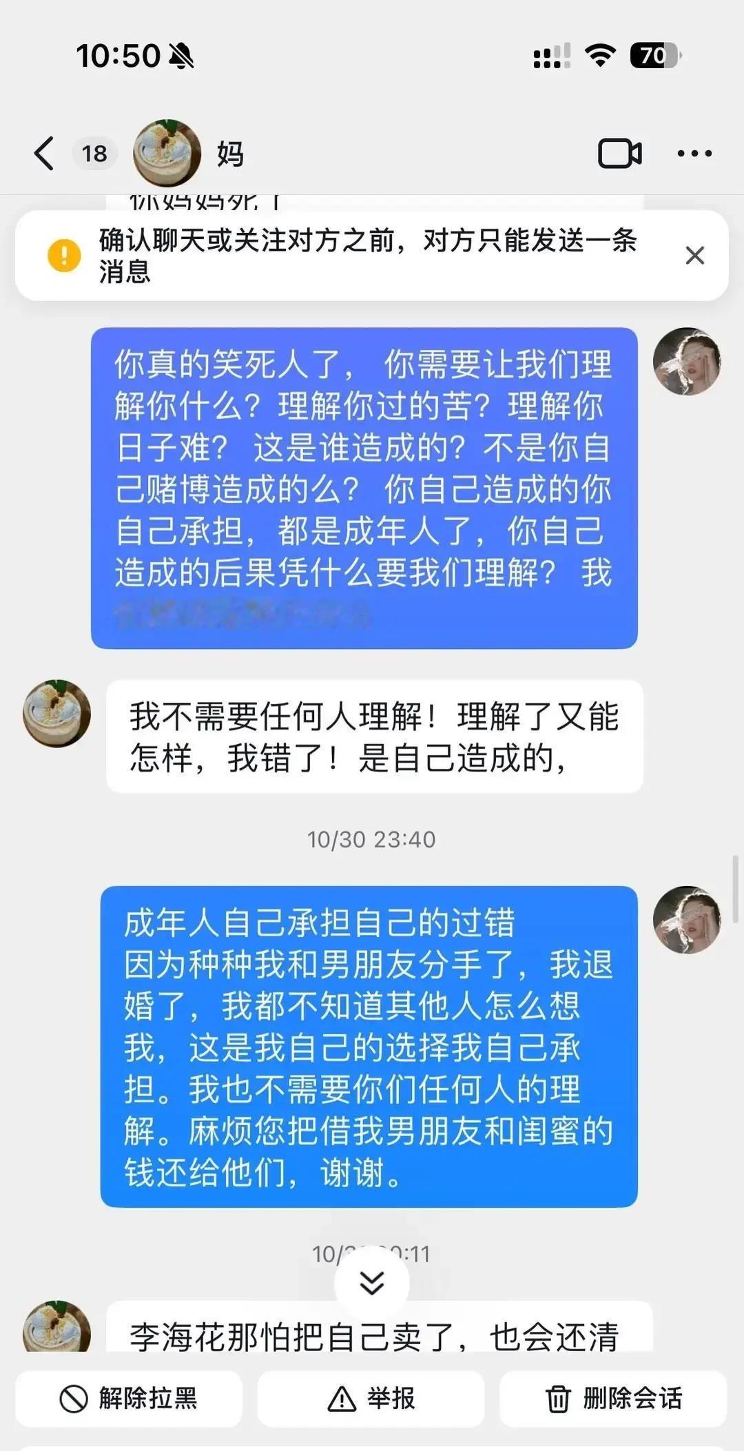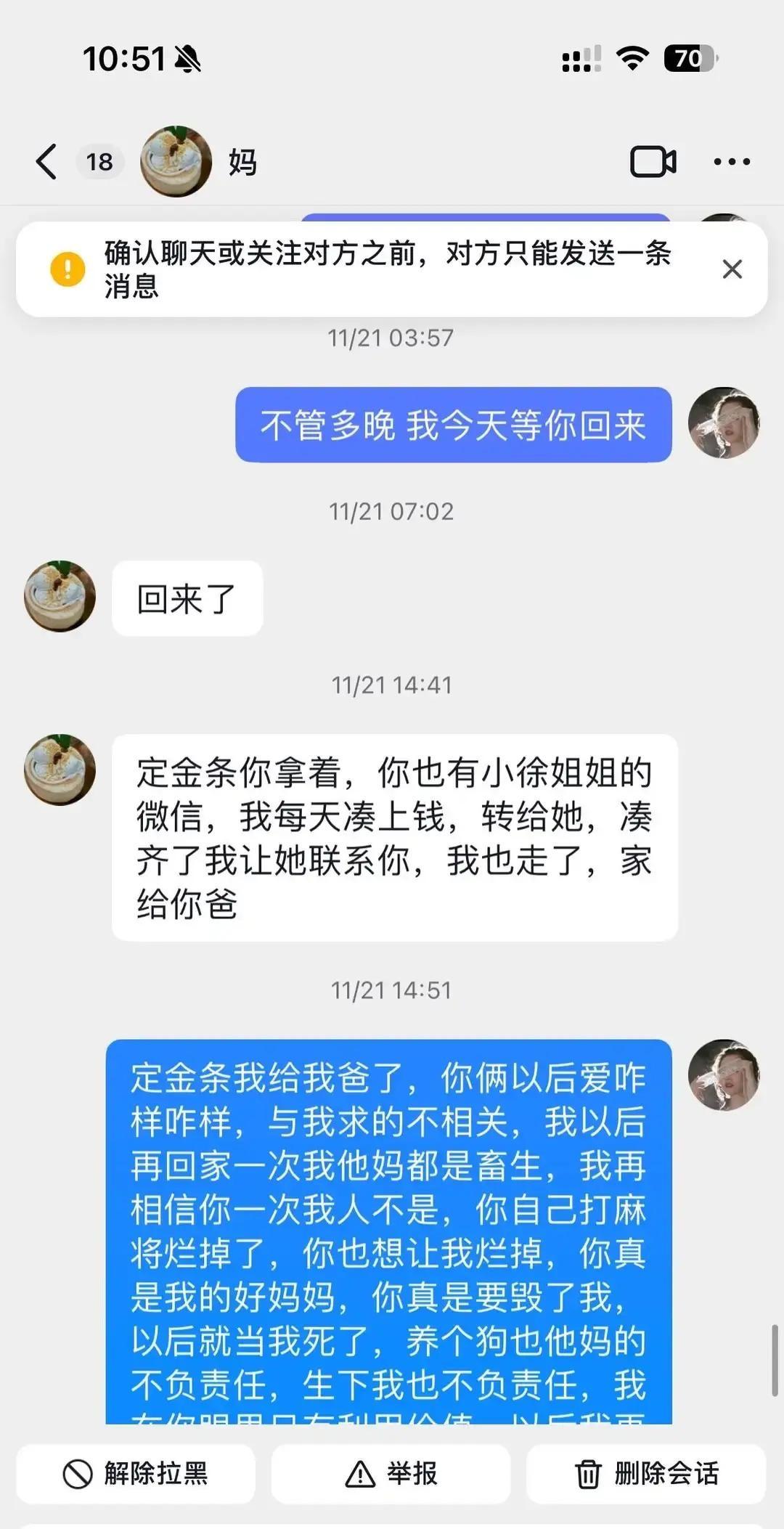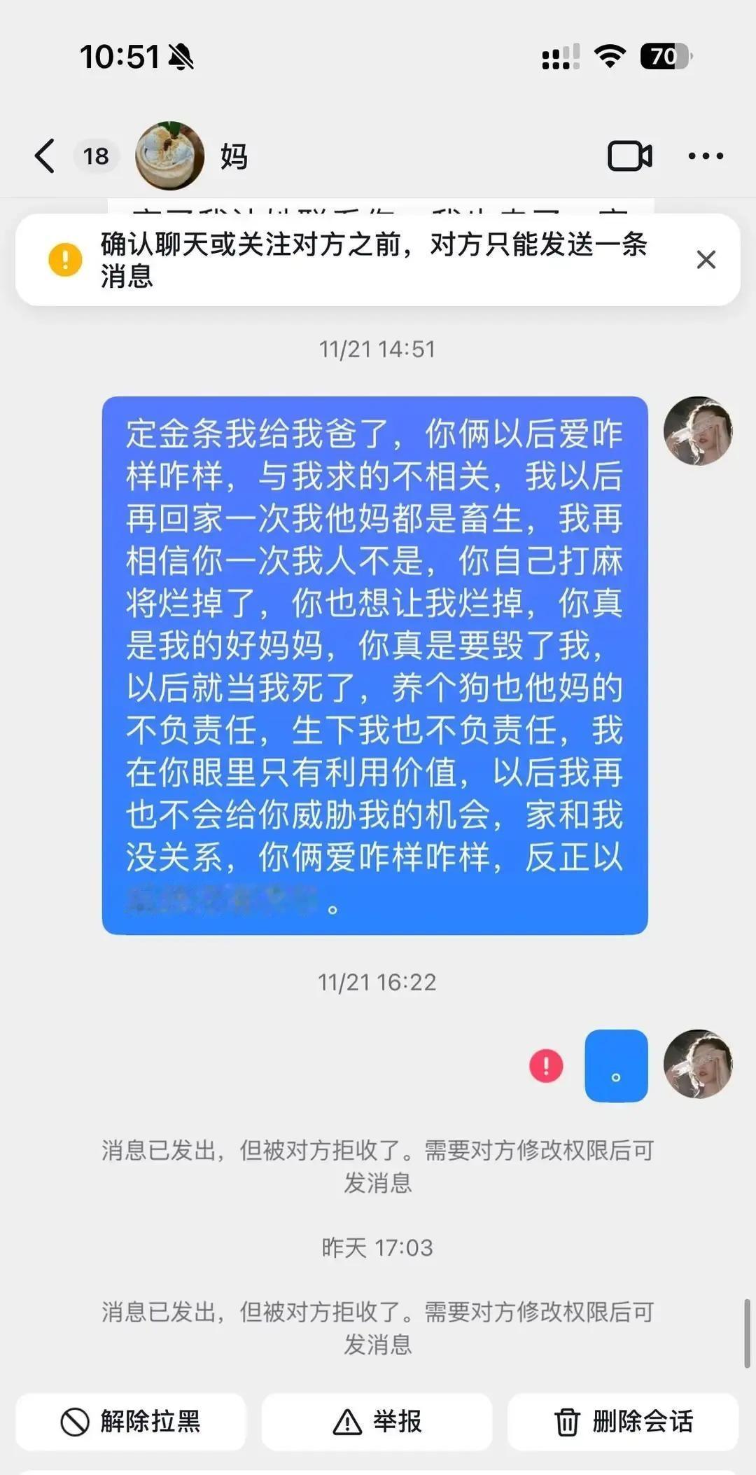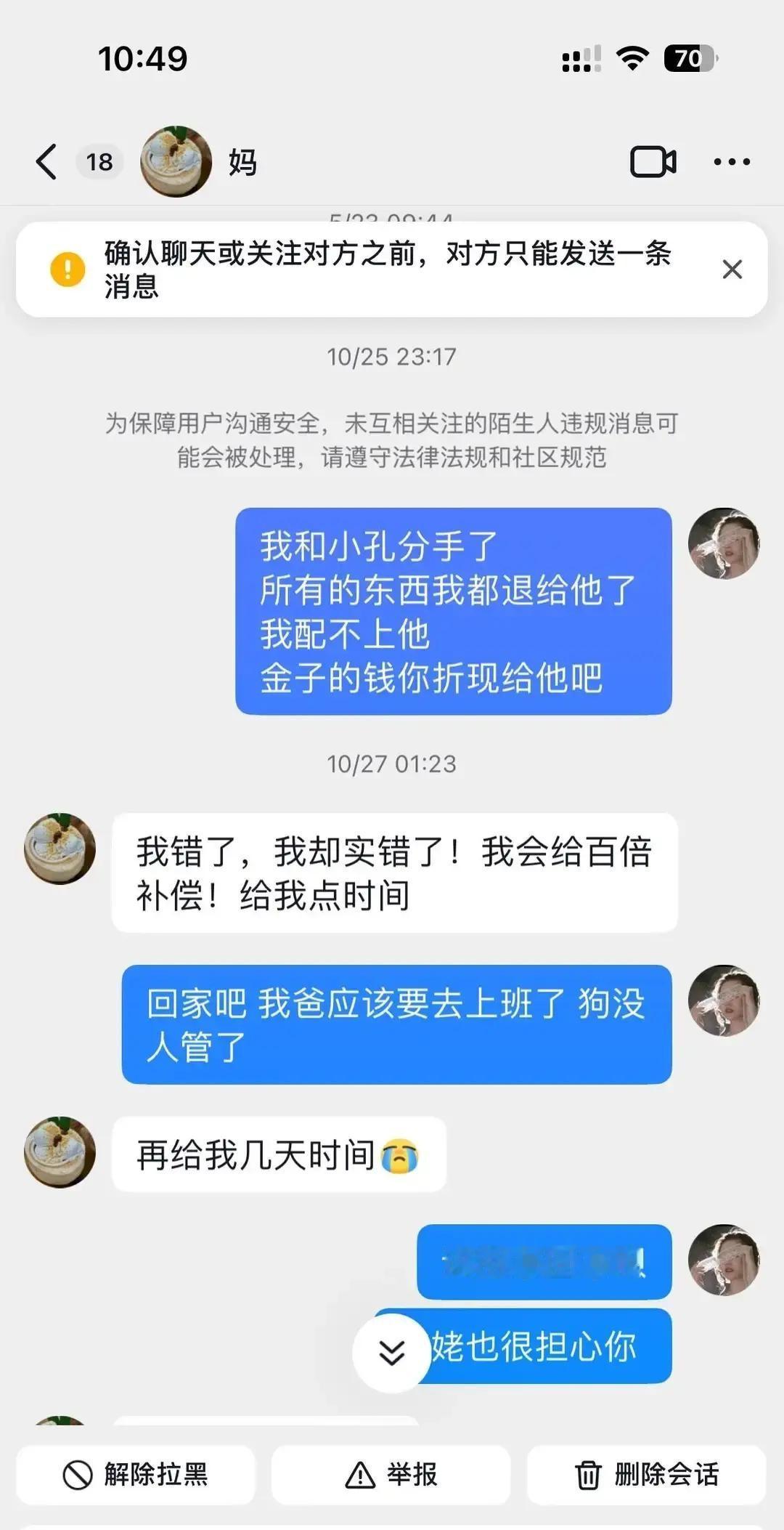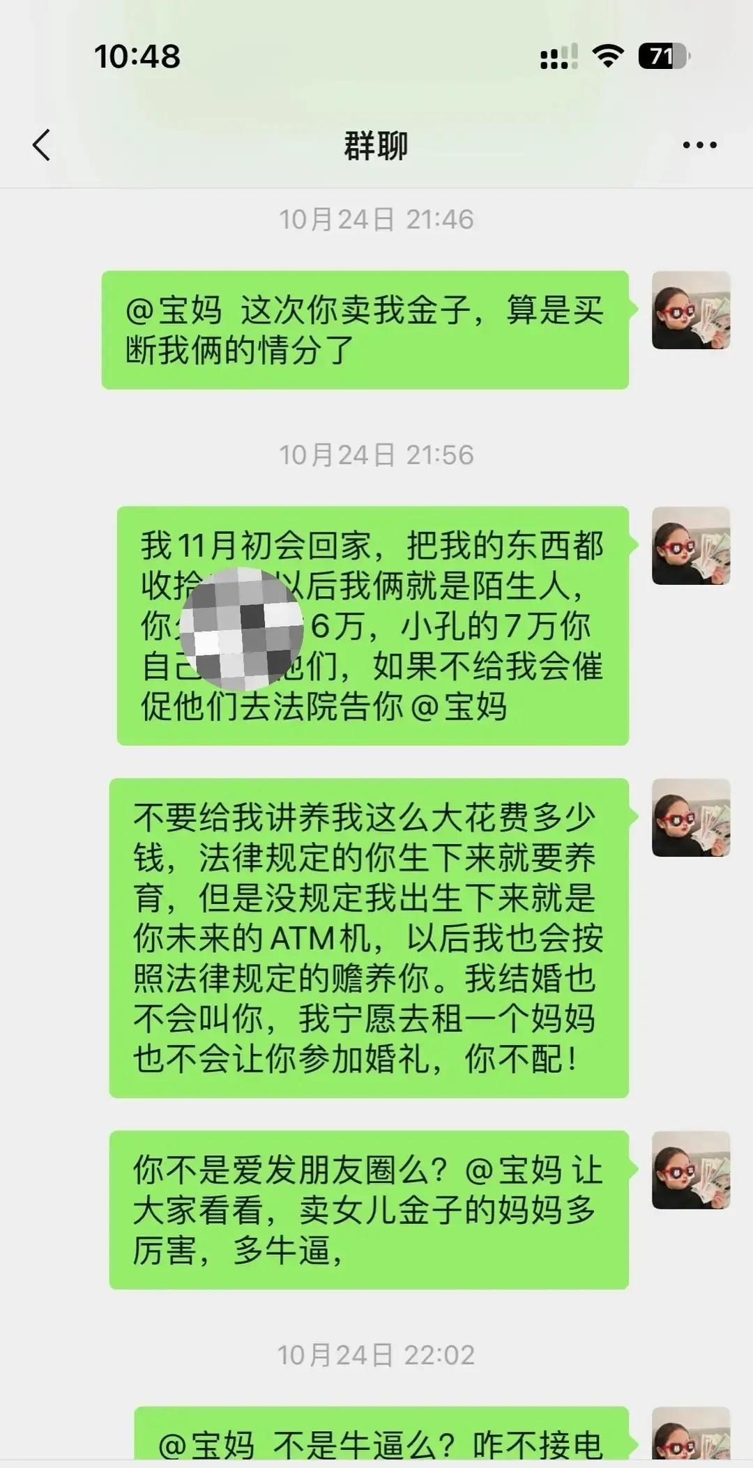 女生订婚刚收的80克五金被亲妈连夜拿去金店熔了卖钱,理由是要给弟弟用。 报警也立不了案,母亲关机消失三天,回来甩一句嫁出去的女儿泼出去的水。 她只好掏五万重新定做,还要跟男友演假分手逼家里赔钱,把全过程发上网。 评论区吵翻,有人骂她炒作,更多人喊干得好,说原生家庭把女儿当提款机就该曝光。 我看着都窒息,自己喜事被亲妈捅刀,重男轻女到连仪式都不留,换谁都要翻脸。 亲情不是免罪金牌,成年子女的财产就是私产,碰了就得还。 她敢撕破脸,是给所有被吸血的女孩打样。