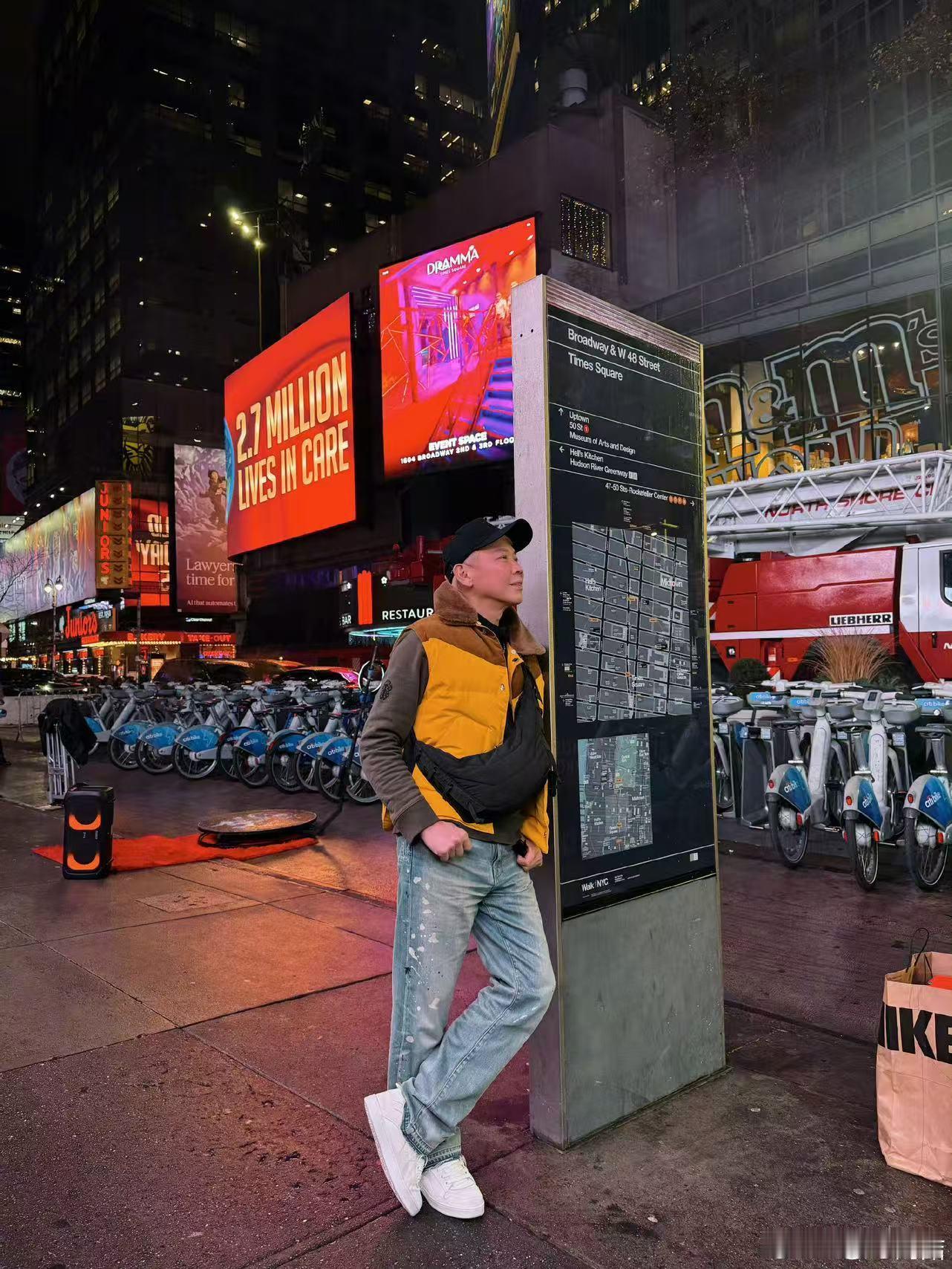 陶喆穿成了美式热狗这小黄马甲和热狗的适配度直接拉满,街头干饭的样子谁看了不说一