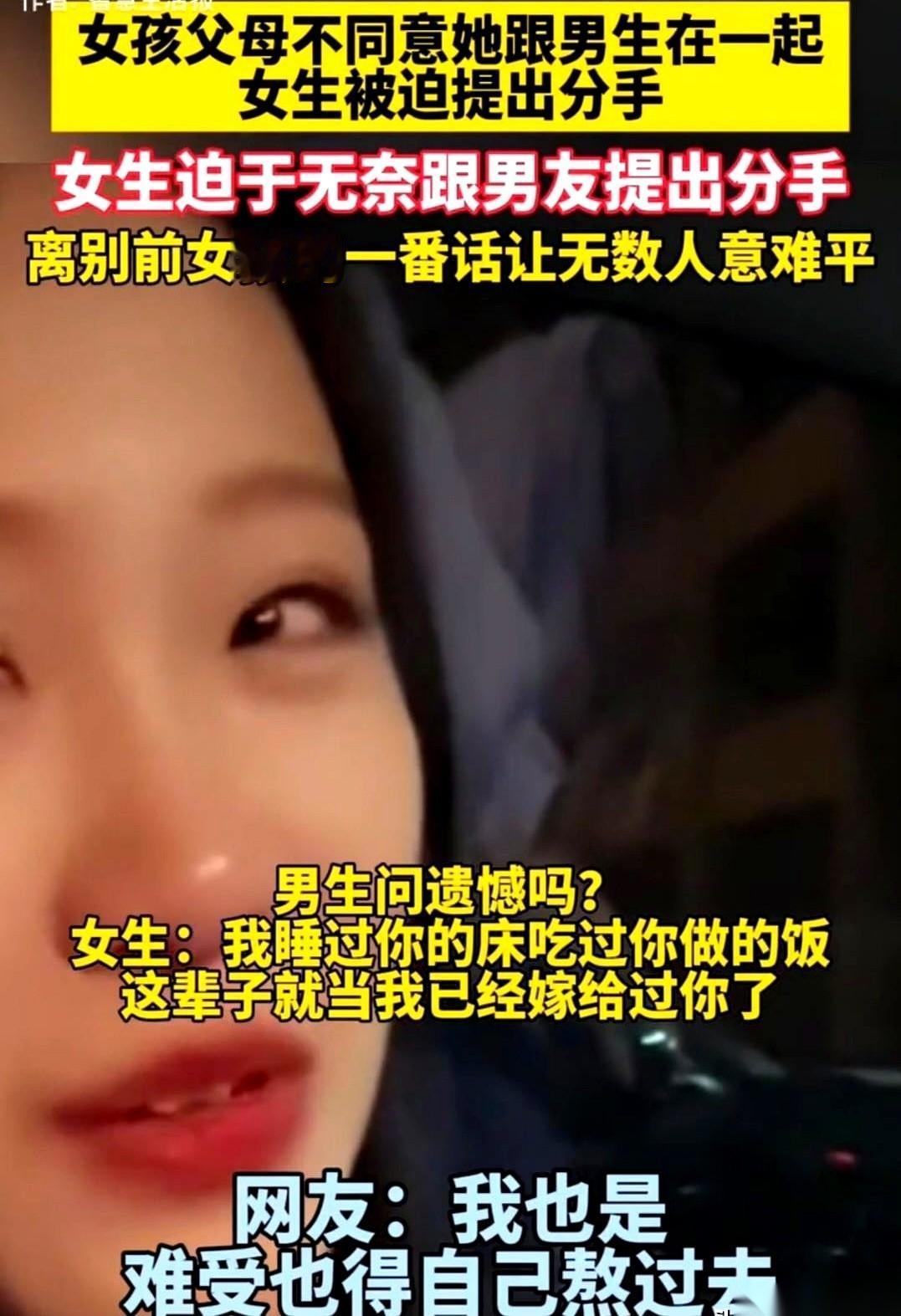 看到好多人骂那个女孩,说她不够爱。 说父母不同意算个屁,说真爱就该轰轰烈烈,就该不顾一切。 我真的有点想笑。 站着说话,腰当然不疼了。 一边是养了你二十年的爹妈,一边是你觉得要爱一辈子的人。 让你选,你怎么选? 那不是菜市场挑白菜,哪个水灵就拿哪个。那是活生生把你劈成两半。 说“去说服父母啊”。 太天真了。你以为你是谁?金牌调解员吗? 有些父母的“不行”,就是一座山,你怎么都搬不走,一开口就是“我都是为你好”。 你再多说一句,就是不孝。 她能怎么办? 一哭二闹三上吊?跟家里断绝关系,老死不相往来? 然后两个人私奔,去一个没人认识的地方,靠着一腔热血过日子? 电影里这么演,是浪漫。 现实里这么干,十有八九,是一地鸡毛。 那个男生也惨。他什么都没做错,他只是……被放弃了。 他觉得自己的爱,被廉价地否定了。 所以啊,别轻易去评判别人的感情。 成年人的世界里,有时候放手,不是不爱了。 是爱不动了。 是被现实,活活耗尽了所有的力气。