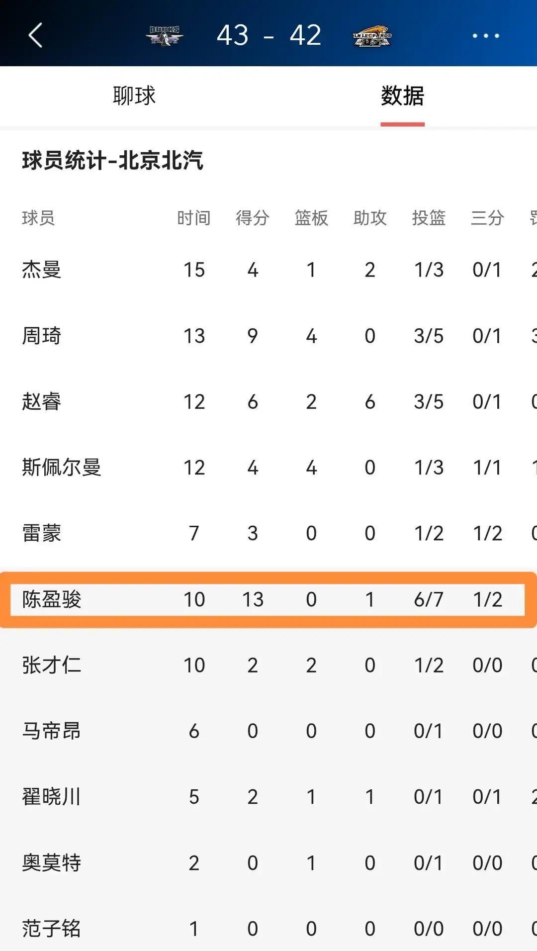 记住这个名字:陈盈骏。让卫冕冠军辽宁半场落后的,不是外援,是个连首发都打不上的后卫。 半场他7次出手,进了6个。你感觉他一抬手,球就空心入网。无球跑位,切出,接球,干拔——动作简单得像训练。但辽宁全队半场才拿42分,他一个人就13分。 这不是偶然。过去五场,他三分命中率拉到四成以上。北汽教练悄悄变了阵:让他和基恩打双后卫。效果很直接:一个能投的后卫,把对手的防线撕开了一道口子。 但杨鸣不会让你一直舒服。下半场,张镇麟那双长臂开始罩住他。接球都困难,更别说出手。整个下半场,他只拿了3分。球队也被逆转。 从广州的绝对主力,到北汽的替补席。数据栏上的场均得分,几乎腰斩。但你看他投篮的手型,一点没变。有些球员的价值,不在首发名单里,而在对手不得不为你改变防守的那几分钟里。 重要的不是你曾被放在哪里,而是你能否在需要时,把球投进。