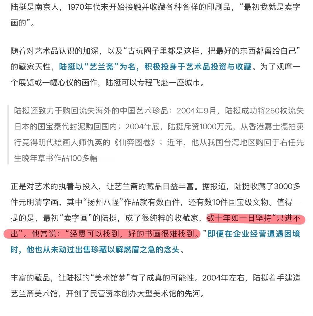 【琅河财经】南京博物院策展人为了证明自己没有损害捐赠者的名誉权,把《江南春》已经卖给了私人收藏当做证据,没想这画是捐赠者捐给自家博物馆的,然后爆出了更大的问题,属于自己把自己爆了。 捐赠者姓庞,策展人也姓庞,这剧情,可以写小说了。 收藏这幅画的艺兰斋创始人陆挺在90年代得到这幅画,对外宣称是从庞家后人手里购买得到的。 江湖传言陆挺数十年如一日“只进不出”。 2025年5月7日,陆挺去世。 随后,《江南春》出现在嘉德春拍上,春拍的日期是5.21-5.24。 既然只进不出,这幅画从南博出来后应该一直在陆挺手中。 他一去世马上被拍卖。 显然后人对这幅画的来历并不知情,当时艺兰斋宣称这幅画是从庞莱臣的女儿手里购得,后人大概对此也深信不疑才会去拍卖。 策展人应该非常后悔自己当初随口说的那么一句话。