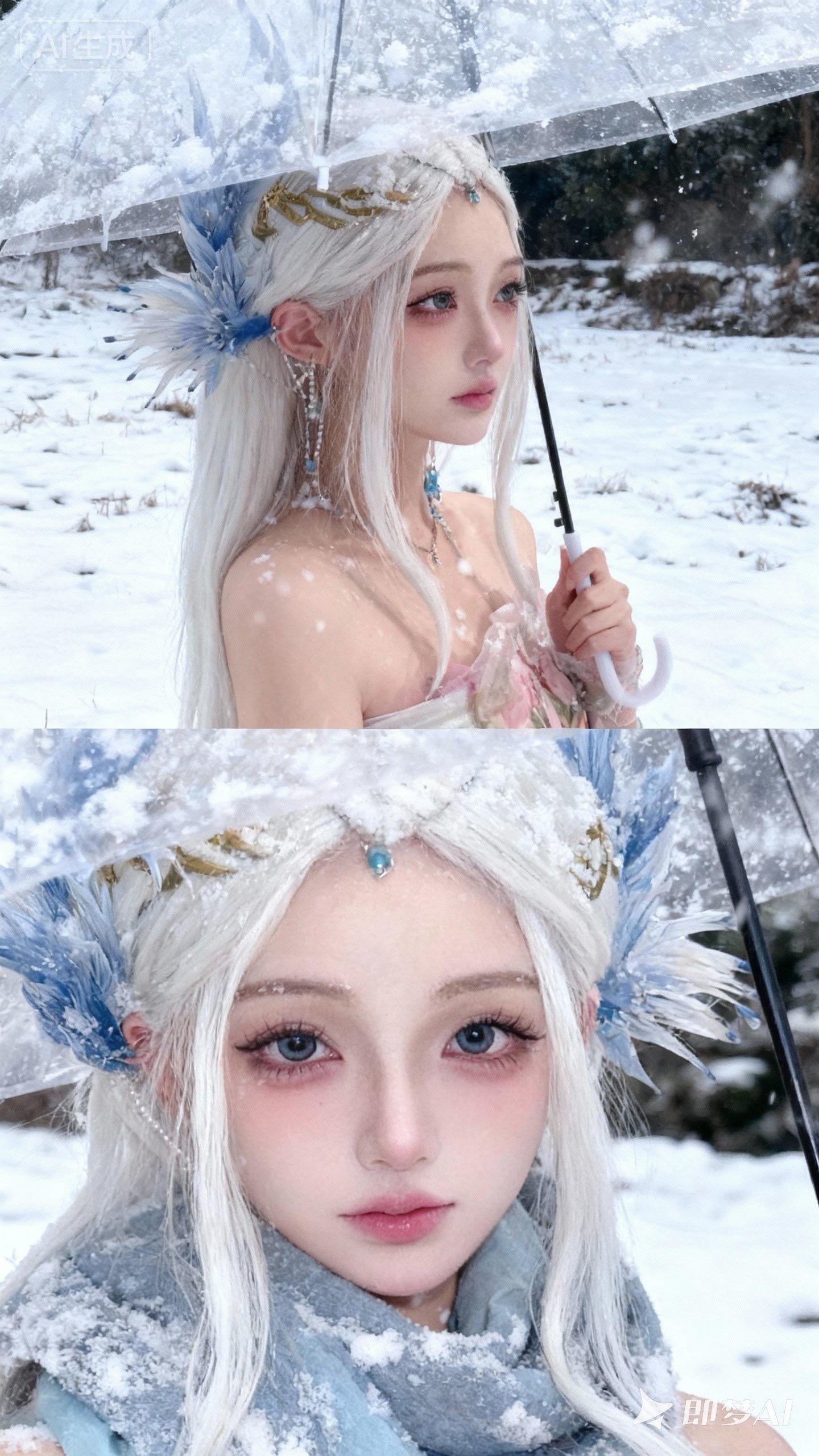 2018年冬天,54岁的何晴拍下了这张珍贵的雪景照。照片中的她淡妆素裹,气色不