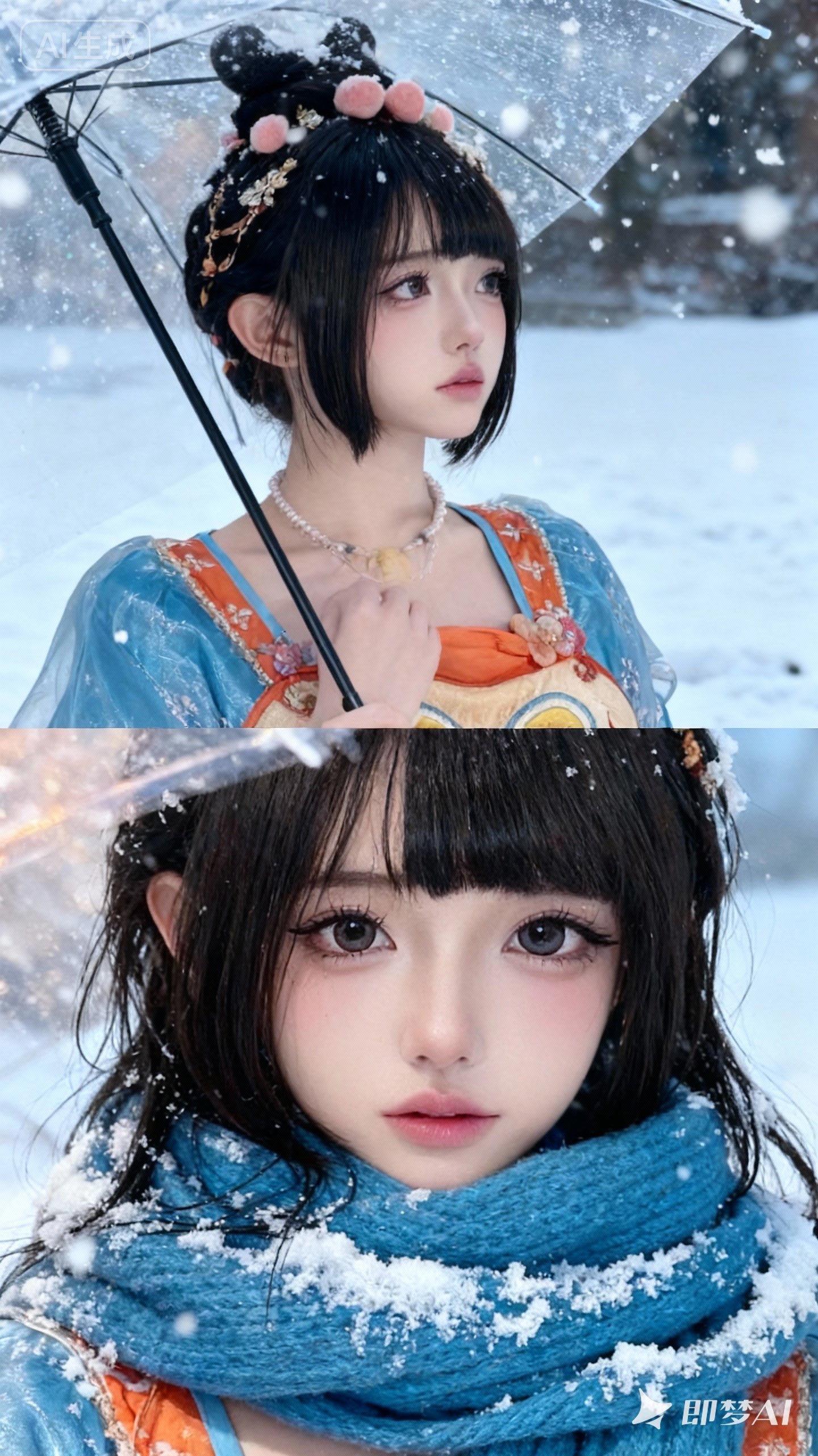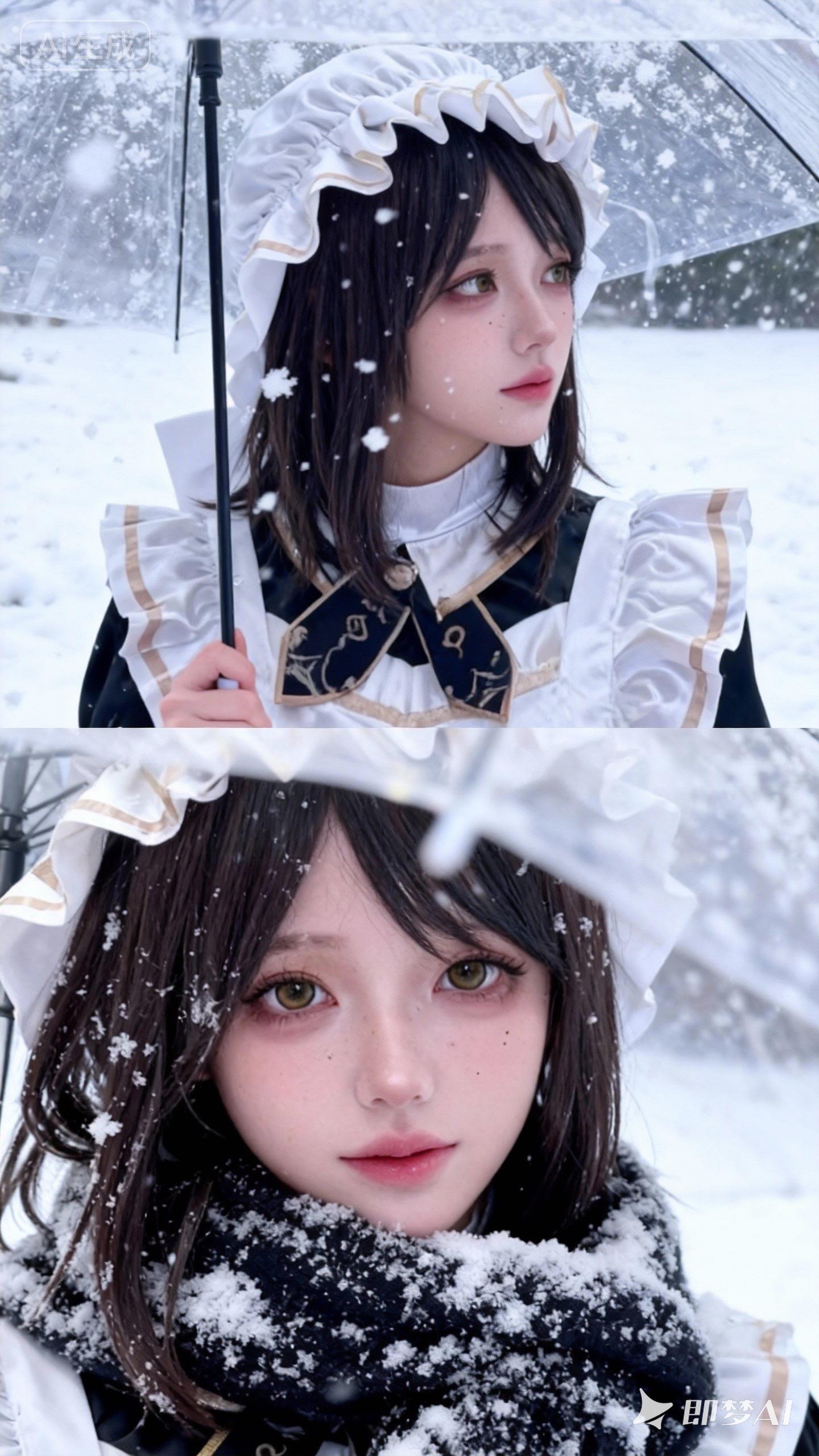 冬日雪景中的时尚穿搭,黑色羽绒服搭配高跟鞋,尽显优雅与温暖。
