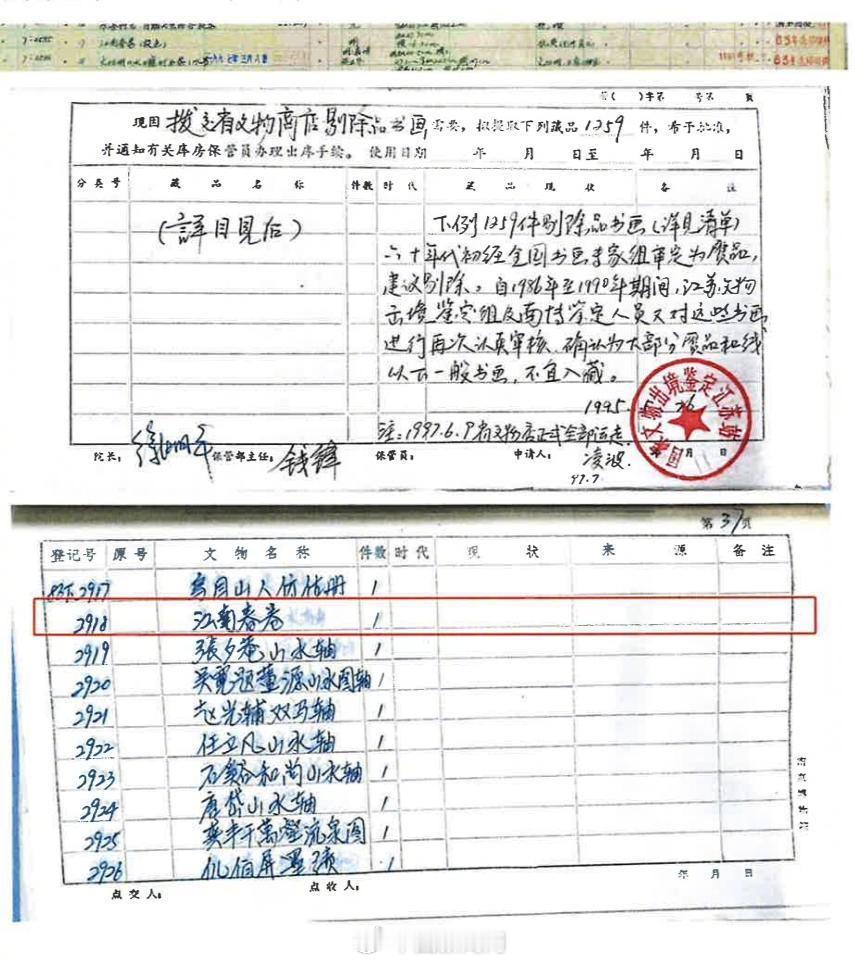🔻这事儿吧,你要说“程序”合不合法,我估计是合法的。🔻看过年代穿越文的网友可能多多少少都看过“去文物商店捡漏”之类的情节。🔻网文主角们动不动“一买就买一四合院的字画”,除了文物商店自己收来的以外,还能是哪来的。🔻就是,被捐赠者后人闹上门来确实不体面。那是另外的话。南博出示江南春专家鉴定记录热点现场