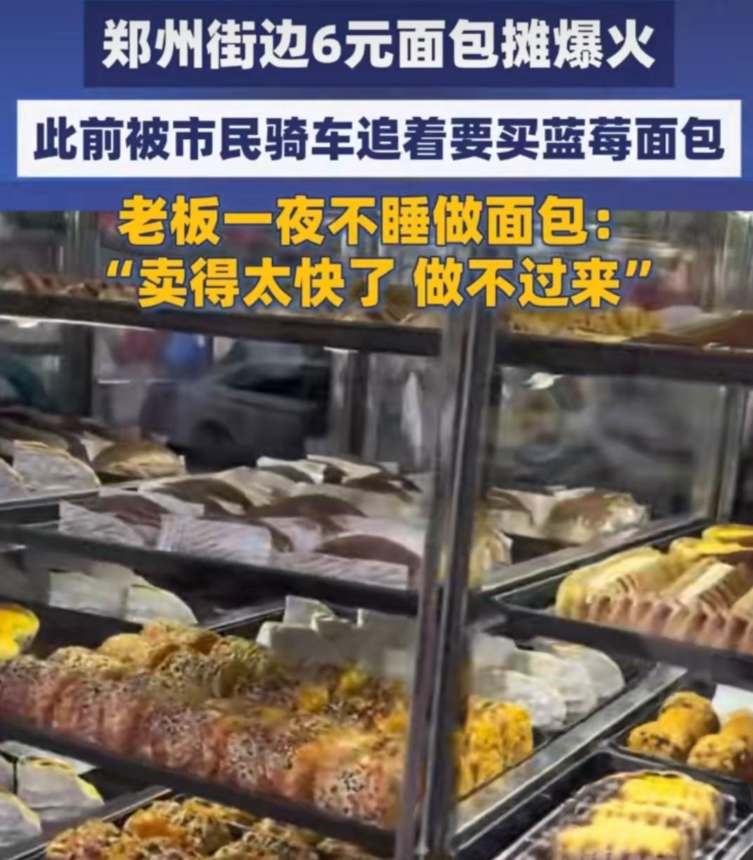 郑州6元面包摊火了,老板一夜没睡做面包!顾客排长队,最贵才12元。 郑州一个流动面包摊最近火出了圈!起因是一个小女孩骑电动车追着面包车喊“买蓝莓面包”的画面被拍下来发到了网上,一下子让这个摊点成了网红。 还没等摊主出摊,街边就排起了长长的队伍,毛毛虫、奶油包、蓝莓包这些老式现烤面包,单价基本6元,最贵也才12元。火爆的生意直接让摊主愁坏了,坦言“一夜没睡觉,面包做不过来”,最后实在扛不住,只能宣布暂停出摊两天,还特意提醒顾客别跑空。 这事儿之所以戳中大家,说到底是摊主的实在。在“面包价格该不该超15元”的争议下,连锁面包店巴掌大的面包都要卖到26元,而这个小摊坚持平价,价格亲民实惠,还不因为爆火涨价,手工现做的态度,让网友直呼“这才是民生该有的样子”。 不过也有不少人担心,突如其来的流量让摊主体力严重透支,就像之前的“鸡排哥”一样,短期的爆红反而打乱了正常经营。大家也呼吁,与其打卡式围观,不如用日常消费支持,让这份街边的烟火气能一直留下去。面包 面包哥 街边 食物