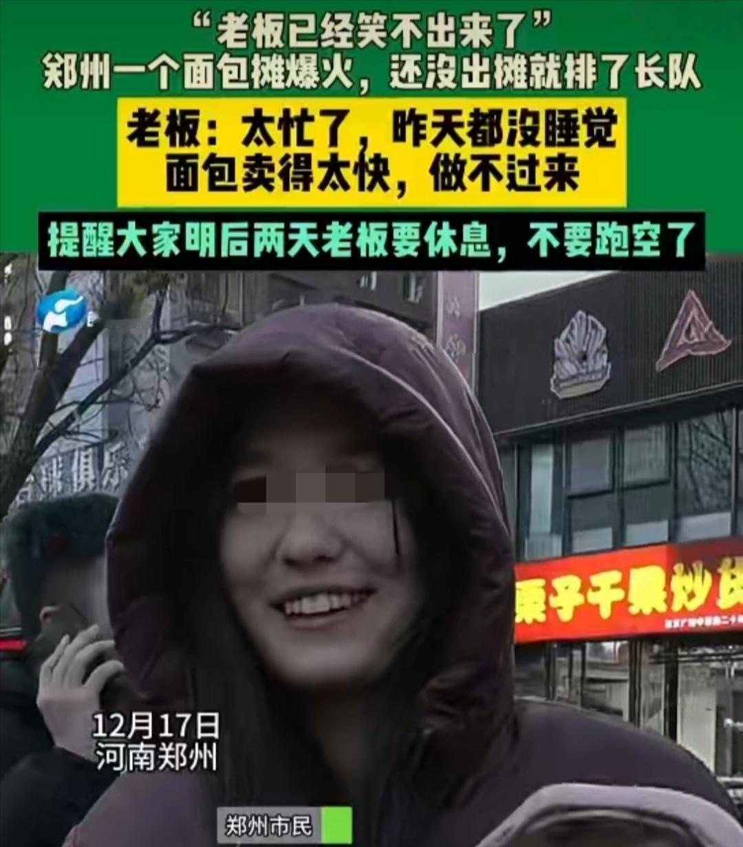 郑州6元面包摊火了,老板一夜没睡做面包!顾客排长队,最贵才12元。 郑州一个