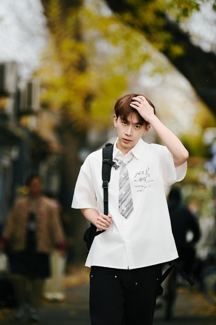 刘昊然李兰迪街头日系感 刘昊然李兰迪新剧街头拍摄,充满日系感,好有感觉的两个人