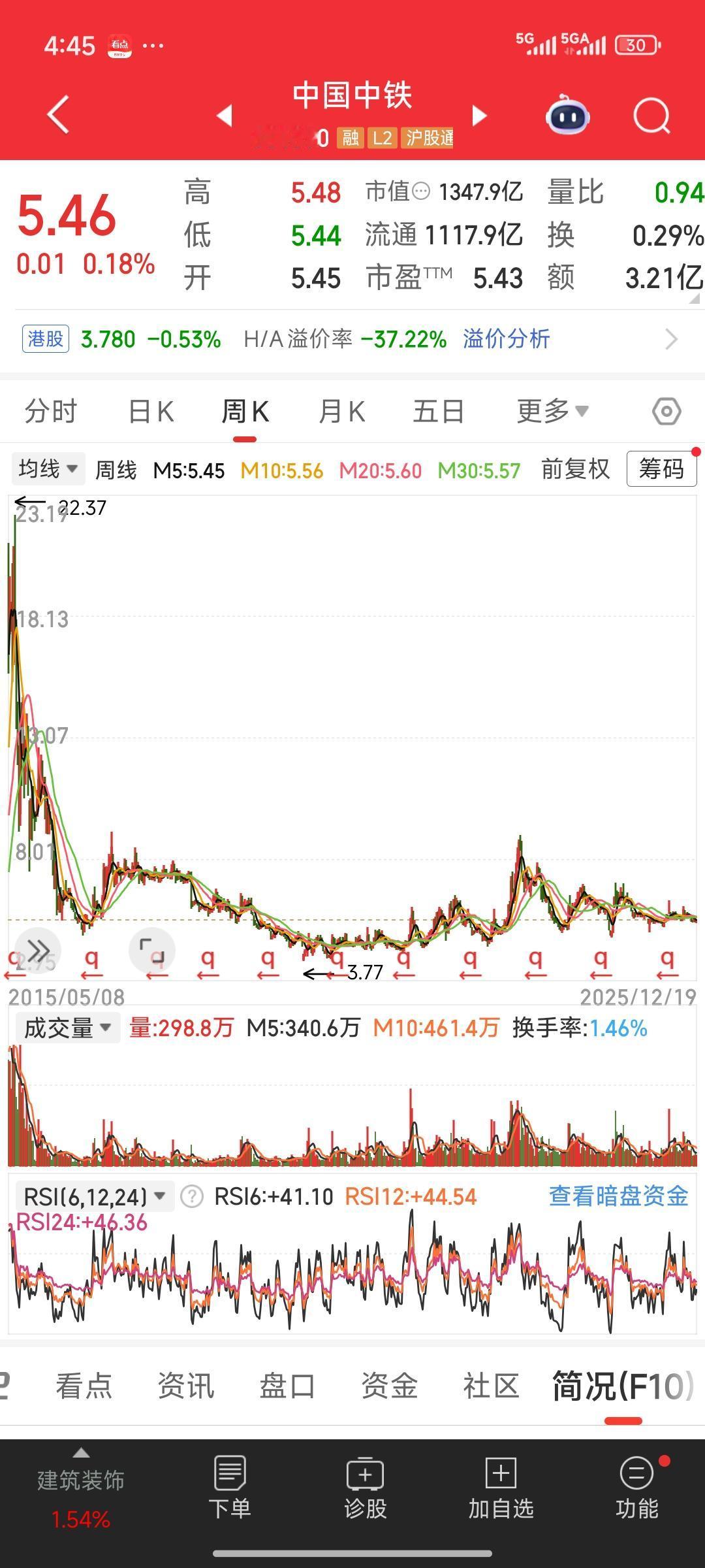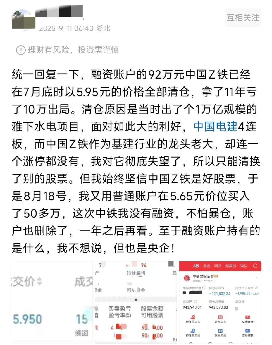 今天看到有股友说,自己持有中国中铁近10年,非但没赚钱,最后还亏损出局。我仔细看