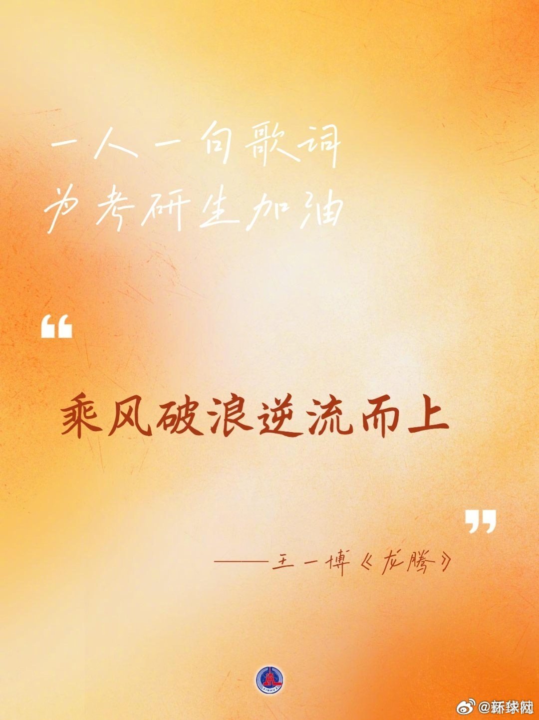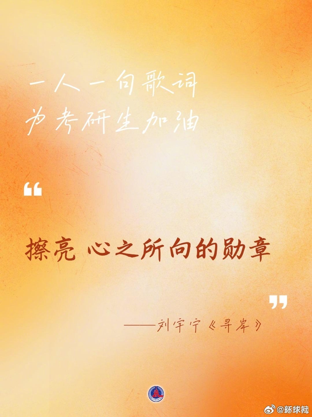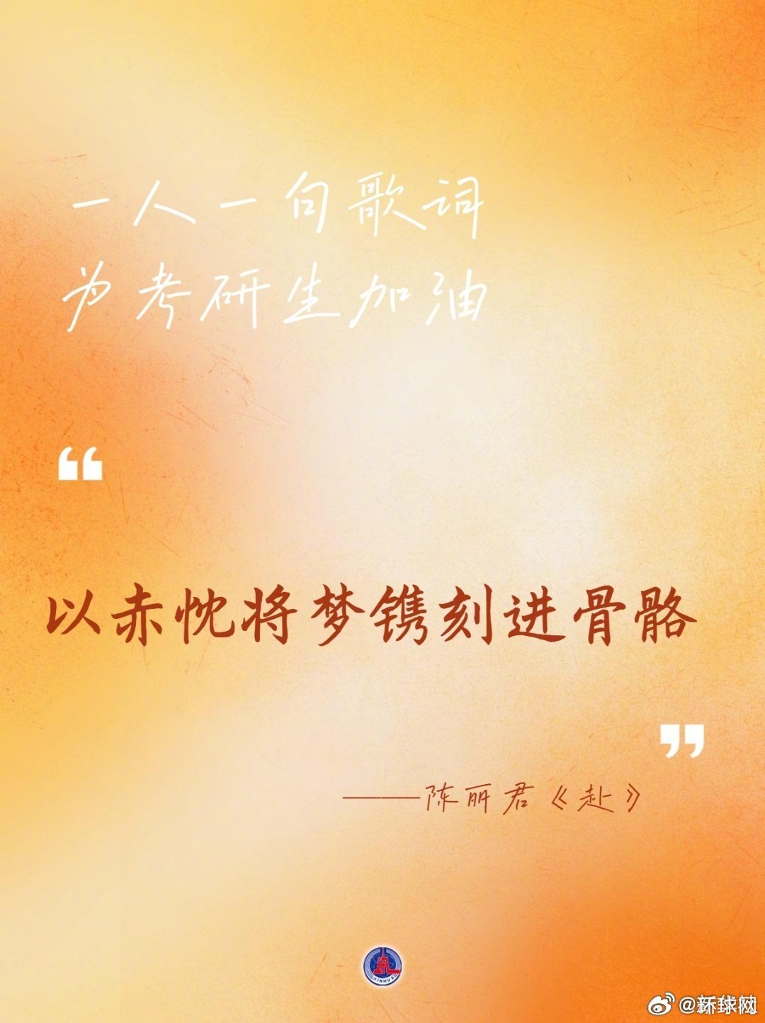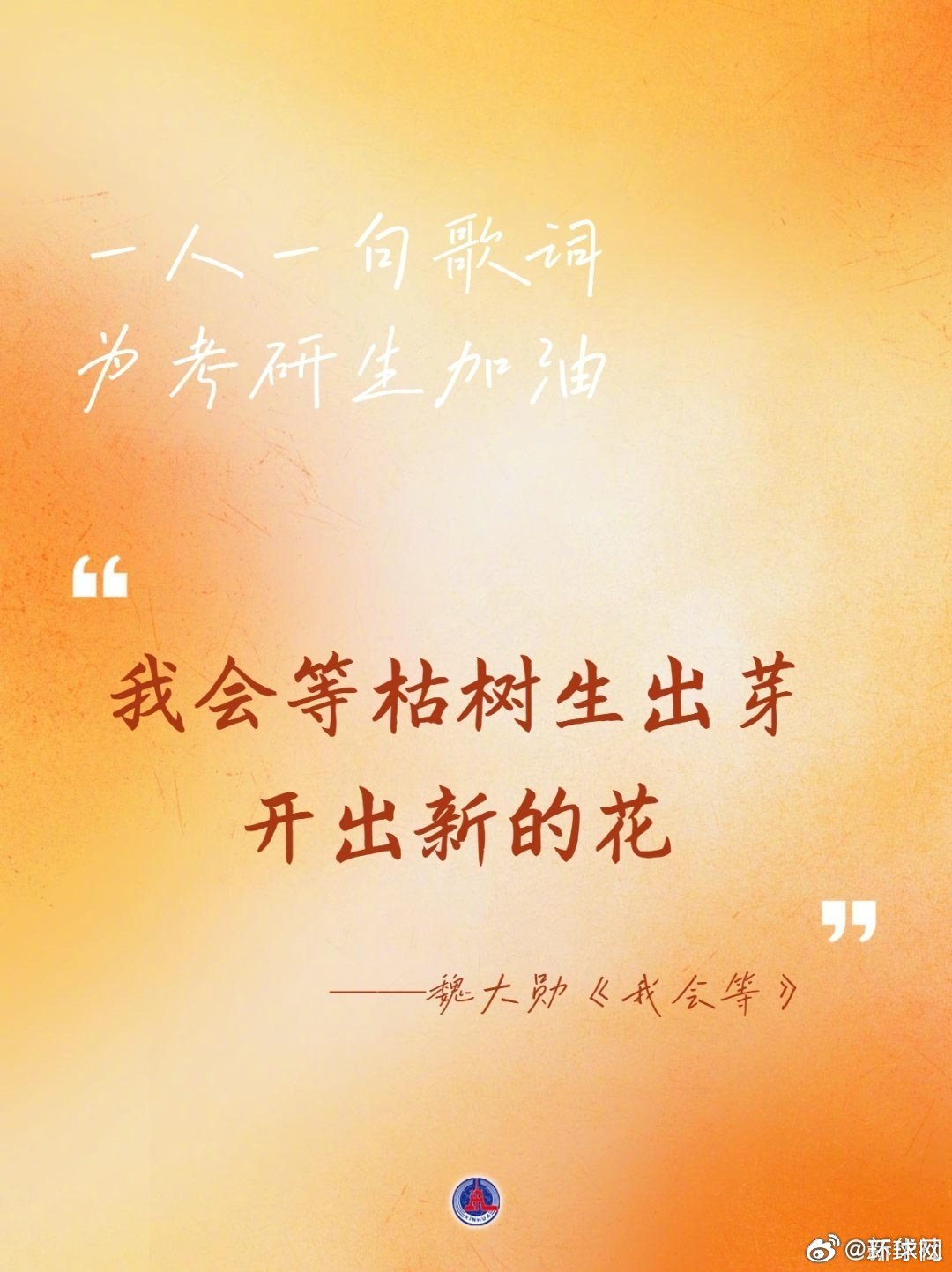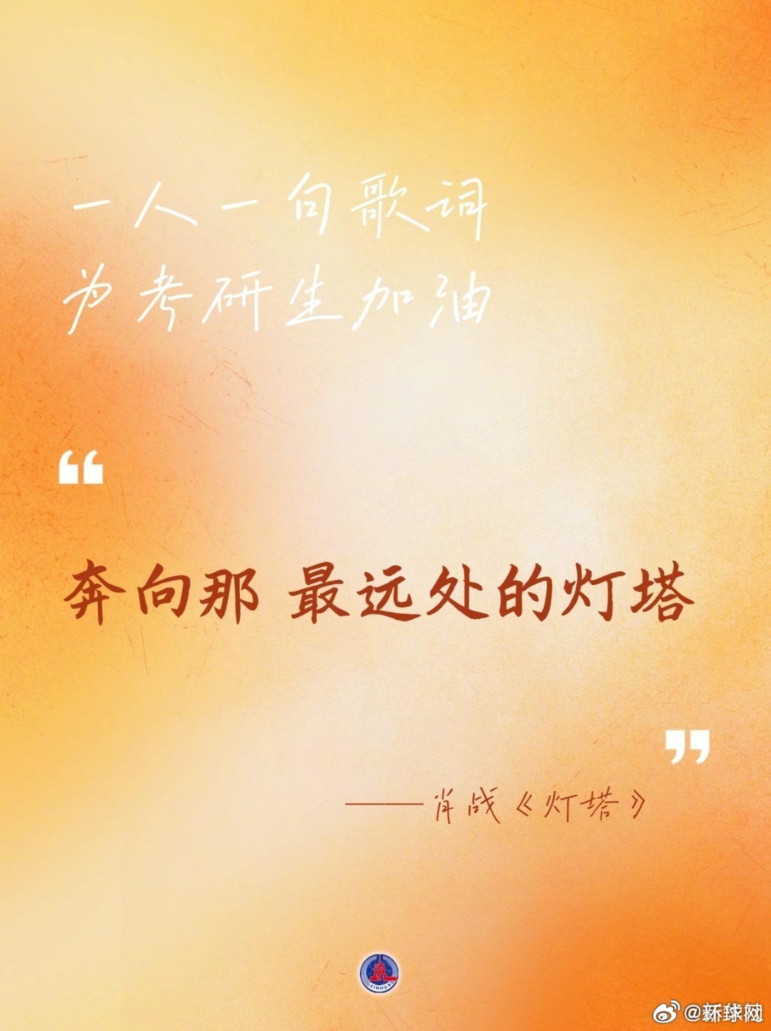 【以歌之名!#一人一句歌词为考研生加油#】明天就要考研了,一路走来,坚持到底,就是胜利。让我们一起在等的歌词里,感受前进的力量。如果用一句歌词祝福考生,你会选哪一句? (新华社)
