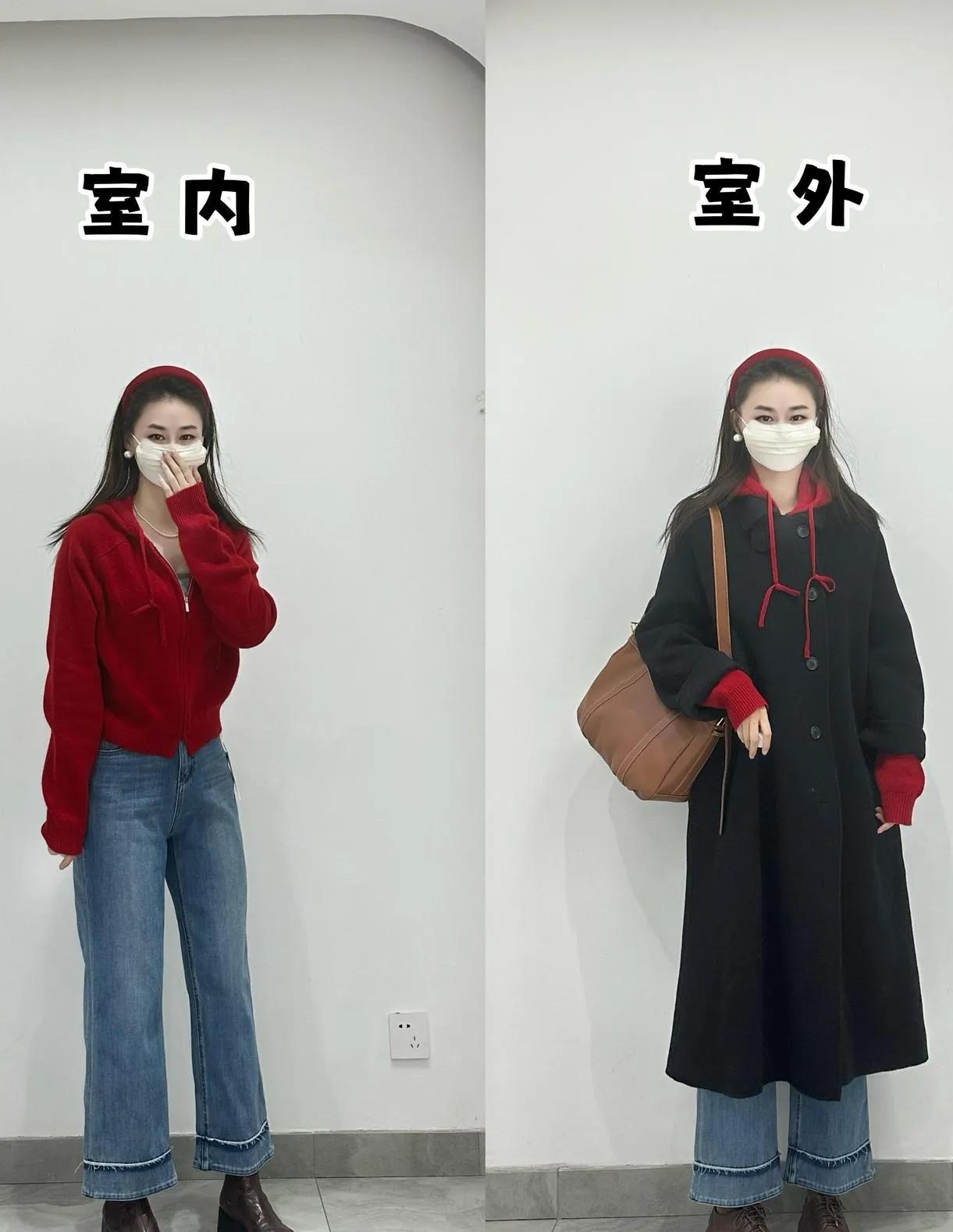 黑色大衣穿对了也太绝了!前后对比惊呆我 原来普通的黑色大衣,换种穿法气质直接开挂! 以前穿黑大衣就是直愣愣套上,整个人又闷又呆板,完全没精神😮💨 现在才发现,叠穿才是灵魂!内搭红色连帽开衫+白T恤,层次感拉满,再配阔腿牛仔裤,休闲又时髦。 圣诞季还能加个绿色围巾、手套,节日氛围直接拉满~室内单穿红开衫也超亮眼,室外搭黑大衣保暖又有范儿,同一件大衣穿出N种感觉,这改造真的赢麻了! 黑色大衣穿搭 穿搭改造 秋冬穿搭
