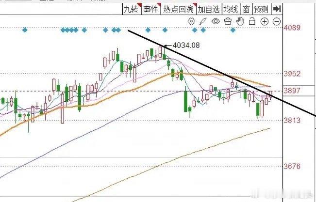 大指数集体上涨,沪指已经三连阳,符合预期! 我们看到证券板块也有比较明显的异动,证券板块最高涨0.98%。那么从目前的表现来看,上证指数,日线级别已经走出了3连阳的走势。而且上证指数到今天上午为止,基本上已经突破了一条重要的下降压力线。大家看一下下图——上证指数日线图。当指数出现这种下行压力线被突破的时候,那么往往意味着下降走势或者已经结束。这是一个重要的标志性的信号。关注莎莎的朋友都知道,从本周星期二大跌中午开始,我就明确告诉大家,市场基本已经跌到位。3800点上方,可以大胆看多。目前看来,完全符合预判。昨天虽然我对于指数的判断是今天指数可能小幅震荡一天,然后指数在下周星期一的时候将会拉出明显阳线。但是看来今天主力都已经等不及了,今天就已经展开了拉升行情。当然这是我更加欢迎的走势。因为代表了主力已经迫不及待的想要展开新行情了。