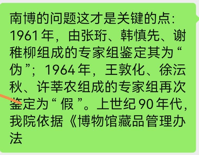 有一说一,陆挺也算“痴绝之人”,一辈子买文物“只进不出”,没想到儿孙不肖,急于“变现分钱”,这“一出”就整出问题来,一夜之间就几乎要“身败名裂[吐血]但《江南春》从“南京博物院”到“艺兰斋”,从6800元到8800万,过程必定不是那么简单[思考]甚至,陆挺自称90年代买的那张画,和2001年“文物商店”6800元出售的画,可能根本就不是同一张[吐血]马未都说,即便是仿品,也是古仿古的精品,绝不只值6800(大意),但前提是——那是能让庞莱臣“打眼”的古仿品[吃瓜群众]还有一种可能,“划拨”出去的那张画,本就是“偷梁换柱”之物,当时也就只值那个价[我想静静]而真品,早已落入他人之手,又被陆挺以十几万的价格“收入”(陆挺可能知道对方“来路不正”),最终导致今天的结局 唯一的疑问是——两组专家60年代认定为假…那可是“五反”“四清”的年代,串联这么多人一起“造假”?拿出来也不能卖…图啥呢???