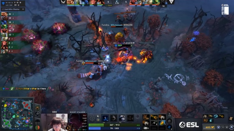 [19:01]下路混战,X哥黏住33斧王狂A将其打残,NTS支援过来拿到33人头,XG趁机控掉魔晶。随后Tundra三人开雾抓掉xNova术士,再转上X哥夜魔被抓,NTS小小配合森哥控住Tundra三人,哥哥巨魔开大击杀bzm毒龙,XG打出1换4,经济领先3k。