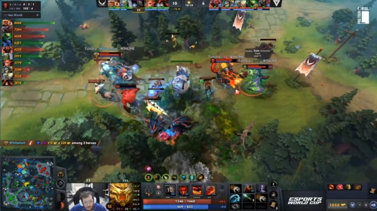 [30:12]下路团战,哥哥人群之中盾起开杀33,X哥bkb开启与队友一起冲锋,哥哥巨魔再杀bzm毒龙,Ari小鱼跟着阵亡,XG打出0换3,推掉Tundra上路兵营,Pure拍拍开bkb高地像反打被哥哥砍残只能回到水泉,NTS再杀33,Tundra敲出GG,XG先下一城。