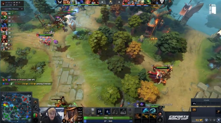 [8:39]上路团战,X哥晚上夜魔无敌逮捕bzm毒龙,xNova术士拿到人头,白天来临,XG推掉Tundra上路一塔。