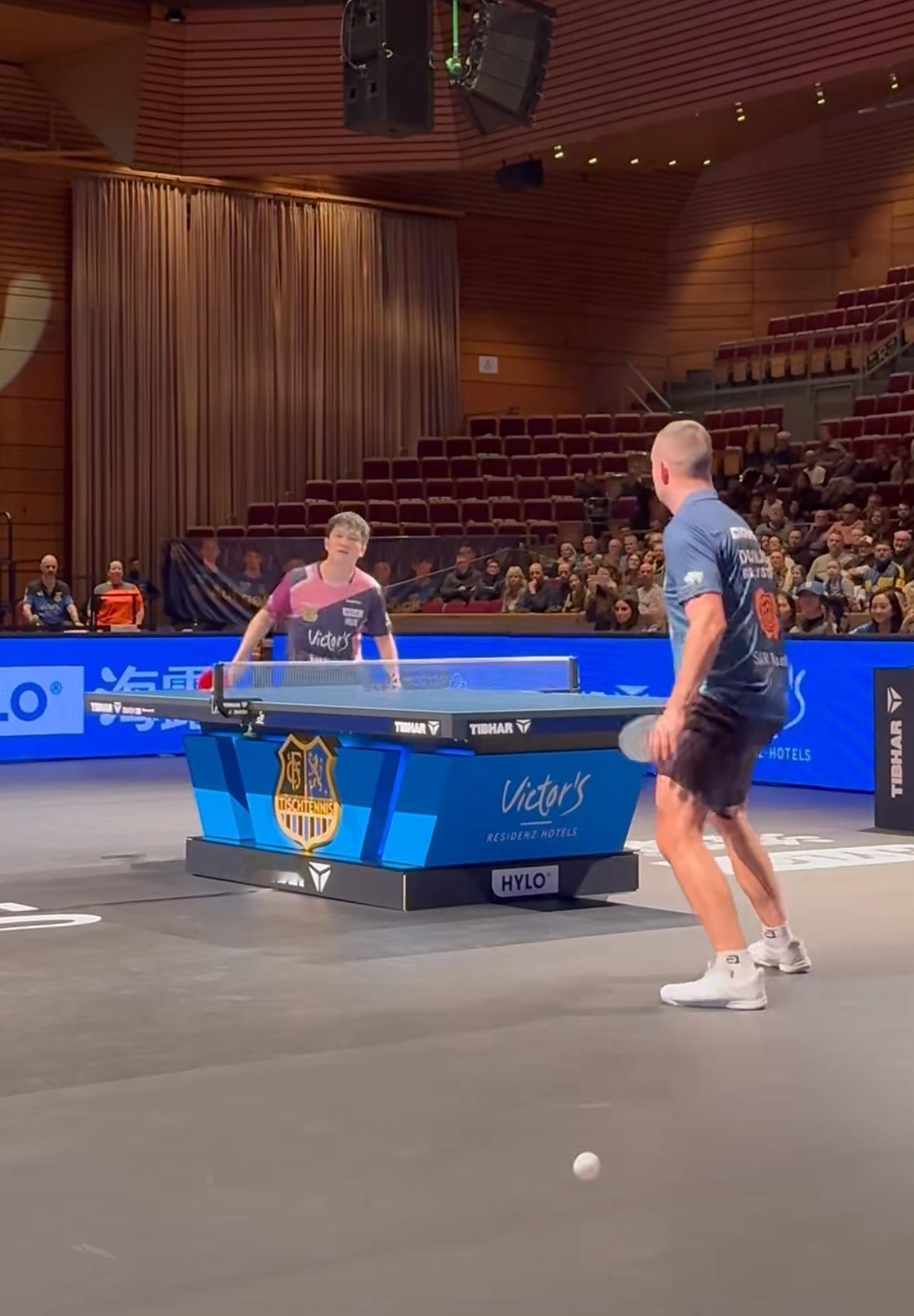 樊振东欧冠首秀——又添新的庆祝动作萌翻全场啊 12月20日凌晨, 樊振东欧冠首秀3:0零封对手, 又添新的庆祝动作, 张本智和的教材更新啦, 哈哈哈上难度了! 致敬皇马, 也是C罗拿下比赛的动作, 东哥太可爱啦, 我听到全场的观众发出尖叫🙀声! 到欧冠专门致敬C罗, 能大大方方 高高兴兴庆祝挺好的, 现场氛围真的很棒, 今天樊振东的庆祝动作可爱, 粉丝战袍可爱, 欧冠比赛的比分可爱, 对手三局合计拿11分, 控分精准! 樊振东的庆祝动作,萌翻全场, 真的是快乐乒乓球!