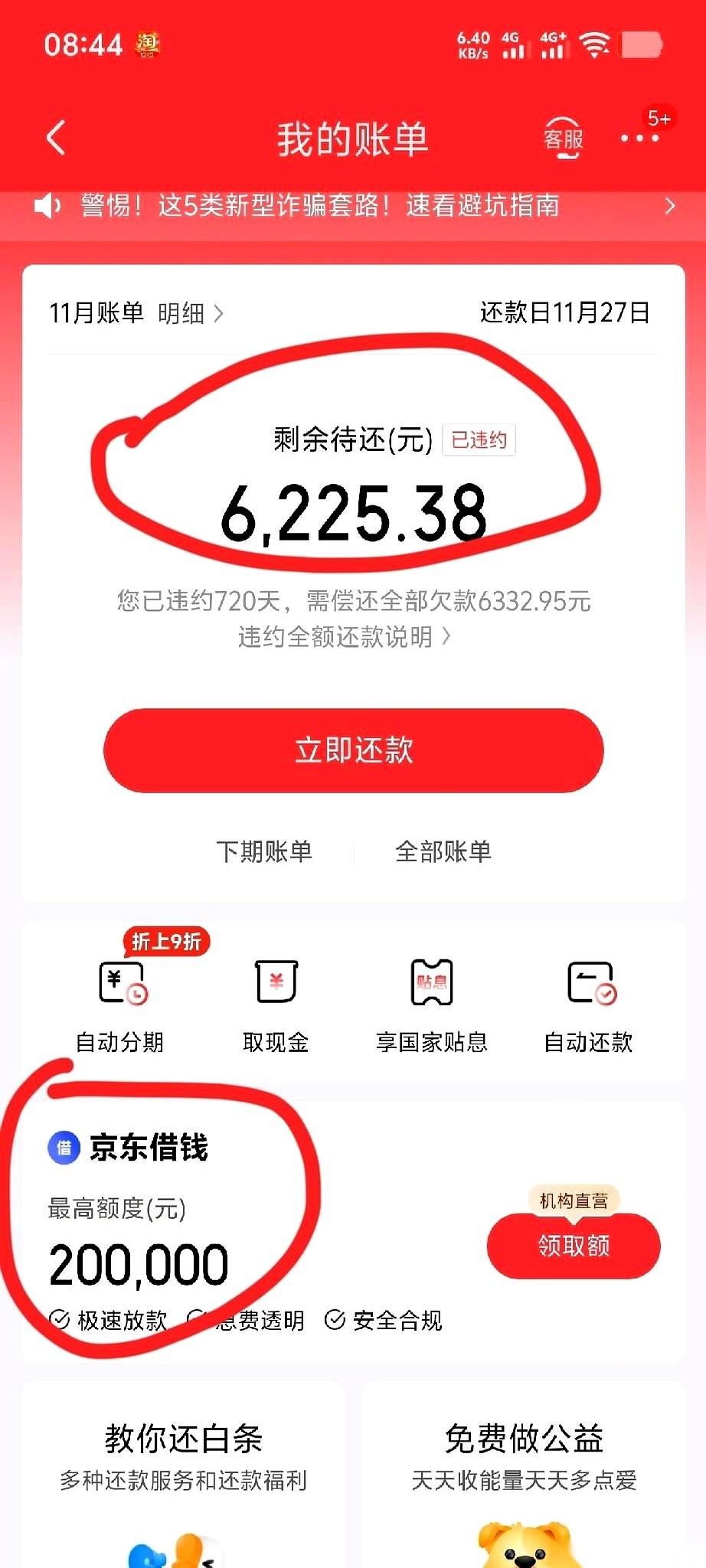 我勒个去,一睁眼,发现自己成了“老赖”。 欠了6332块,还TMD违约了720天