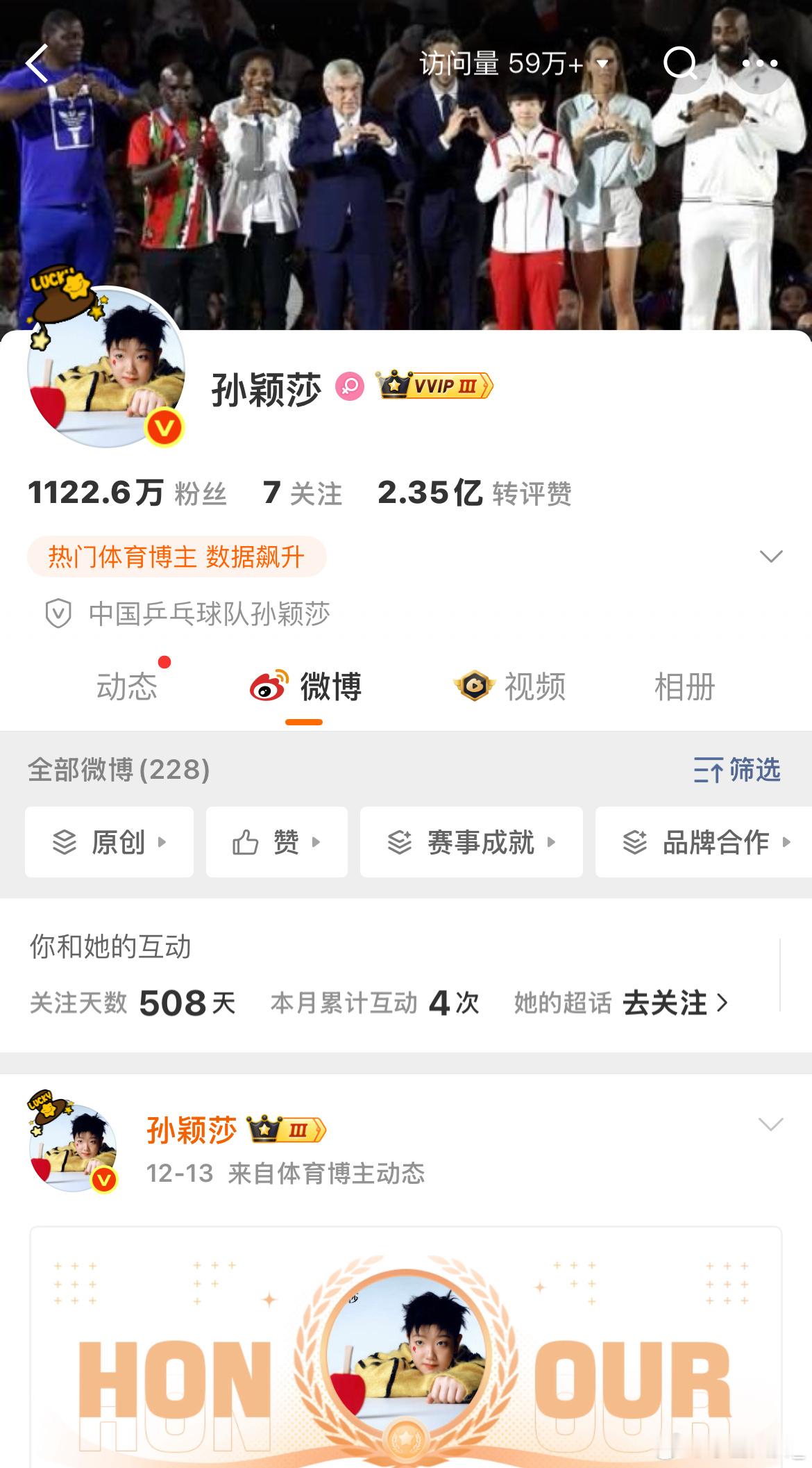 微博年度能量人物孙颖莎投票 睁开眼的第一时间就是看宝贝!遥遥领先!