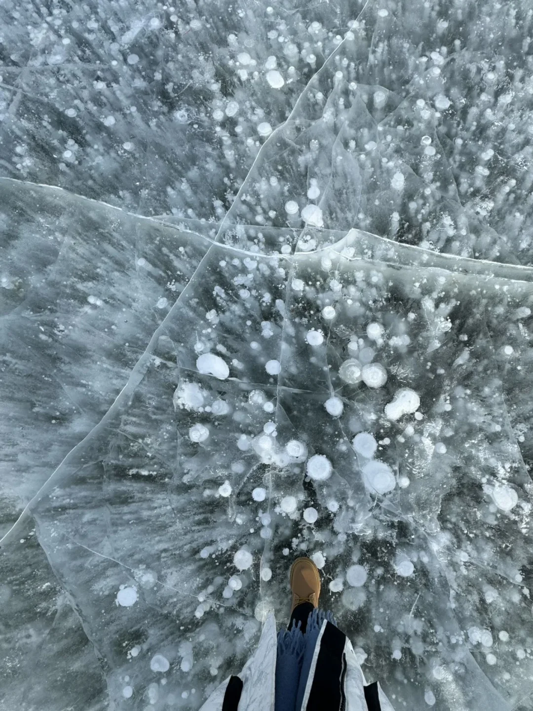 听劝啊,千万别早于1月下旬去!我去年1月初冲的,湖面还没完全冰封,蓝冰碎碎的、气泡冰稀稀拉拉,心心念念的冰裂和吊坠冰直接扑空❌ 虽然雪景是美的,但还是有点小失落