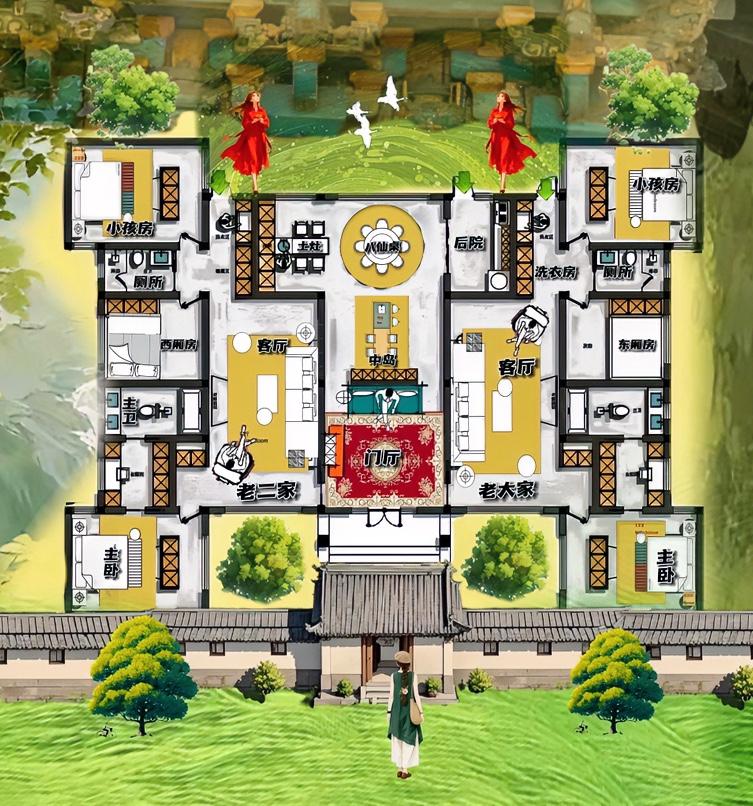 招人喜稀的双年拼,小合院,390㎡棒棒哒,不为天使脸蛋型格局,只为家和万事顺,没边界的堂厅,有边界的俩兄弟的生活区? 布局合理性,很温暖的自建房! 工字颜值,T字布局,就是兄弟宅的精气神,前者把面子牌,打出十分,后者把共享区,安排有理有节,讲究在门厅,烟火在后门,不追求华而不食的造型,而是每次见到,心都痒的,全通透布局! 头头是道儿的正能量动线! 老大家的三居室,和老二家布局,大差不差。喜欢它的人,带衣帽间是标配大套房,不喜欢的人,有洗衣房,沒晾晒衣物地方,拉了自建的后腿! 布局有毛病,治愈在后院,待开发的生地,九分菜地,分后厨,给自建高房,上大招! 学会嘛? 正常的合院,不用一进院,也能走出五进式的道路! 视野挺开宽的,自建房!