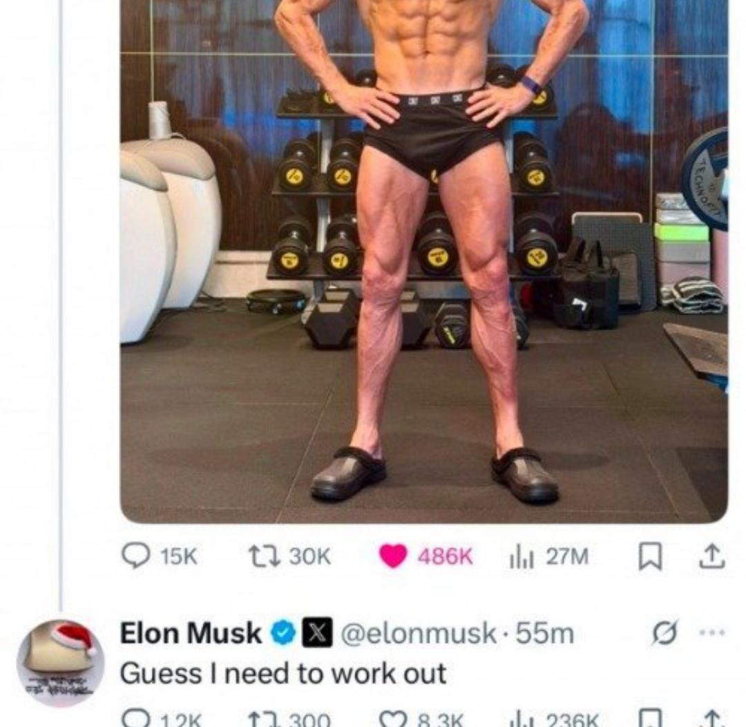 当40岁的C罗晒出魔鬼般的肌肉照,马斯克竟表示自己需要锻炼了。这位世界首富为何会被“卷”进这场健康风暴? 当40岁的C罗在社交媒体上晒出如雕塑般完美的肌肉照,瞬间引爆网络热议,就连世界首富马斯克也不得不承认:“我想我确实该锻炼一下了。”这不仅是一场体育界的健康挑战,更是跨越商业与体育界线的一次跨领域互动。马斯克的幽默回应不仅拉近了与公众的距离,也让这次互动充满了娱乐性和话题性。 C罗的完美身材背后,是他多年来对身体管理的严格自律。据报道,即使是深夜结束客场比赛返回俱乐部,C罗的第一选择也是前往健身房加练。他的体脂率常年保持在8%左右,即便是休赛期也不例外。这种对身体的极致管理,让他在顶级联赛中依然能保持高水平竞技状态。马斯克的评论和网友的二次创作,不仅让C罗的健康理念深入人心,更引发了公众对于健康管理和自律生活方式的广泛讨论。这场跨界互动不仅是一次简单的评论,更是一次关于健康与自律的社会现象。