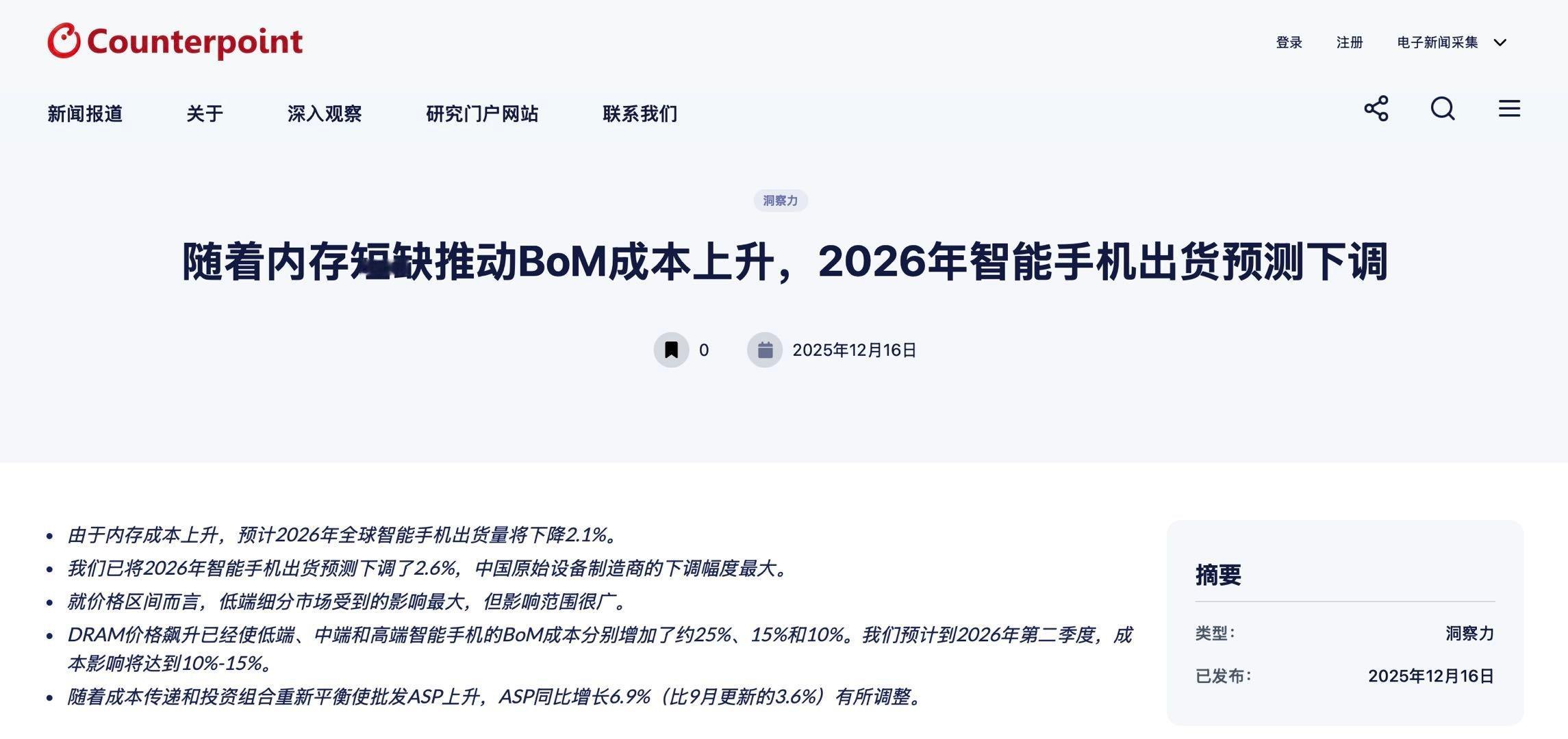卢伟冰确认小米17Ultra涨价在今晚的直播中,小米集团总裁卢伟冰直面小米17Ultra定价悬念。他指出,自2022年底算起,AI需求井喷已持续三年,2025—2027年存储芯片合约价进入刚性上升通道,手机BOM成本随之陡增。此前小米15Ultra锁定6499元时,测算模型仅纳入处理器与影像模组溢价,并未计入内存涨幅;而17Ultra将直面存储、处理器、相机三重成本叠加,涨价幅度“会比想象中更大”,但仍低于内存本身的跳升幅度。小米17ultra是26年唯一的1" Lofic + 2亿APO长焦,明年最强的影像机皇。明年影像旗舰主摄普遍回退,还能同时给到1"+2亿的,有且只有小米Ultra了 1" Lofic + 2亿APO已经配置拉满了,如果再有连续光变,这套配置就是26年第一且唯一,说它是26年影像配置最顶名副其实
