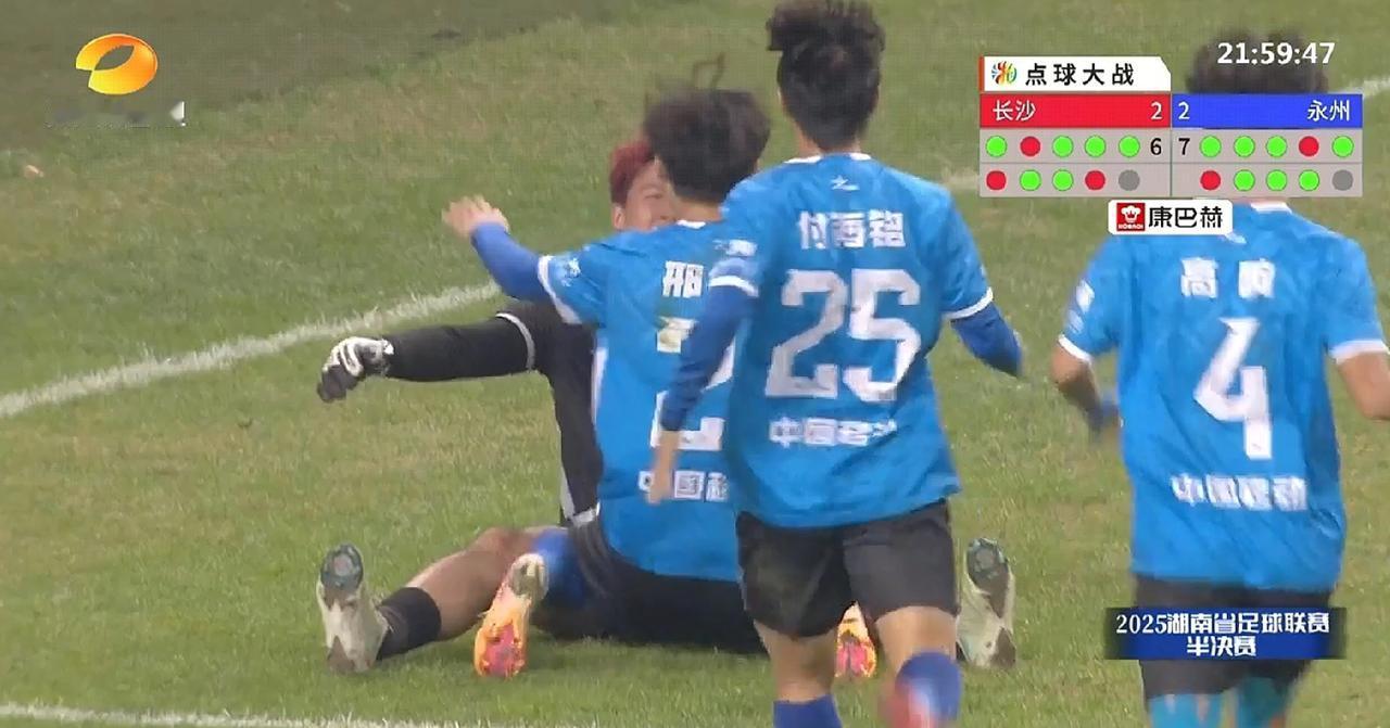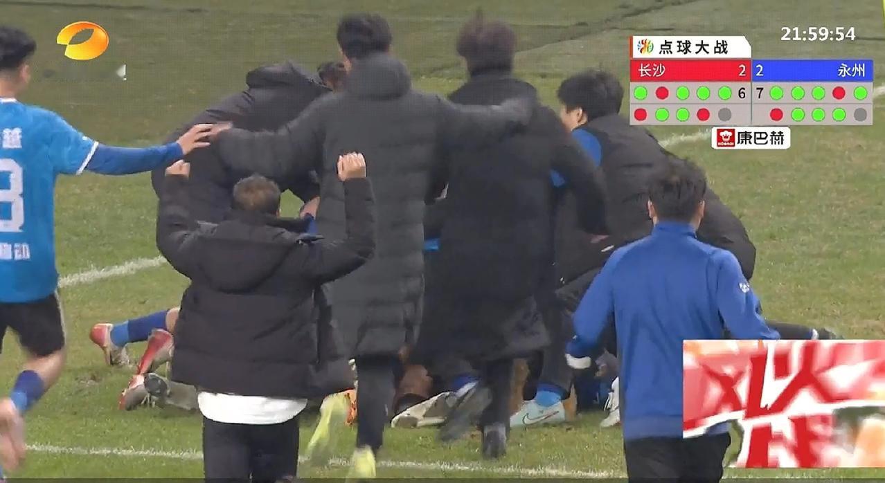 永州队太牛了!湘超联赛半决赛永州队淘汰了排名第一名的长沙队,而且还是在长沙队的主场! 今年的湘超联赛要创造传奇了,一匹超级黑马诞生,就像苏超联赛的泰州队一样,在淘汰赛阶段过关斩将以点球冲进决赛,上一场四分之一决赛中,永州队也是以点球淘汰娄底队。 这一场半决赛永州队和长沙队在九十分钟内踢成平局,2:2,可以说双方是不分上下的,但长沙队的队员压力更大,可能是因为大家都认为长沙一定能够进决赛,而永州队这场比赛主教练都不能进球场,被罚停赛,永州队员压力更小,他们输了也没有压力。 加上上一场淘汰赛永州队有了点球大战的经历,而长沙队之前没有经历过残酷的点球大战,这让永州队反而是有了优势。我在昨天就发文说过,永州队淘汰长沙队,对湘超联赛的价值更大,因为那样湘超联赛就更有流量热度,而且对永州市的经济发展来说也更有利,因为永州队的超级黑马传奇故事会让永州市更加火爆出圈。 我是希望永州队能够夺冠,希望永州队能够创造奇迹。