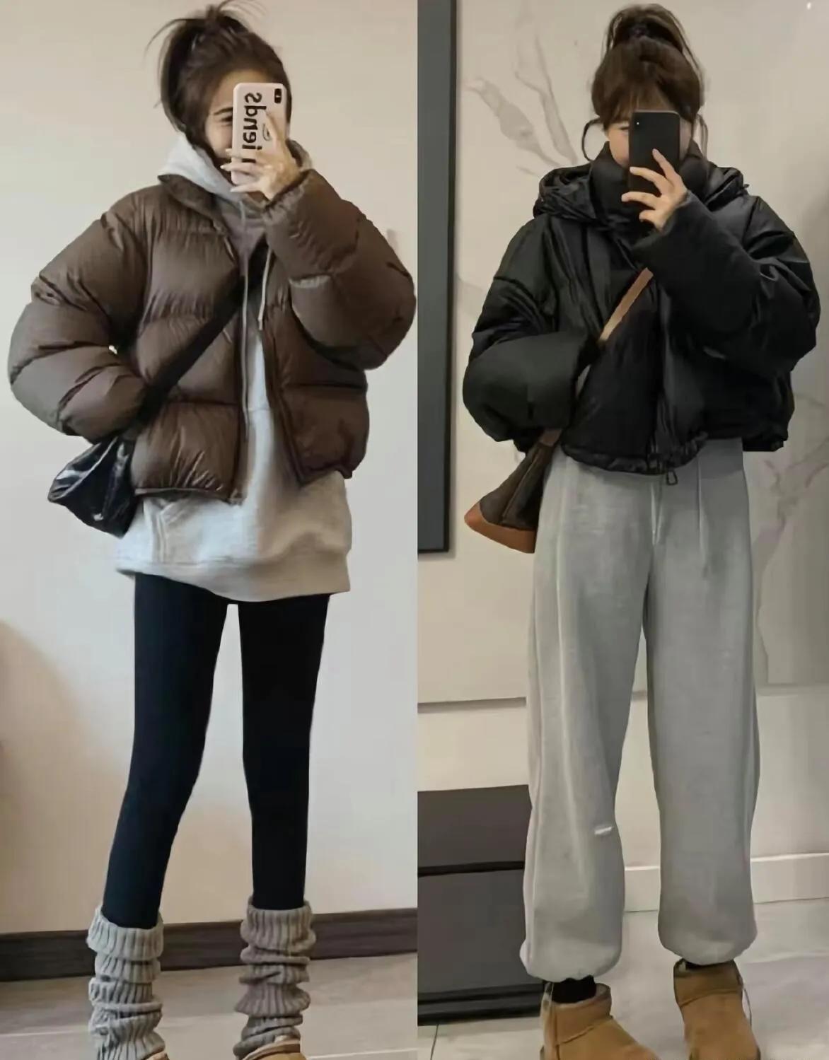 今年的短款羽绒服也太会穿了吧! 被这组短款羽绒服穿搭狠狠种草了!不管是经典黑、高级灰还是复古棕咖色,短款版型都能在保暖的同时做到利落显瘦,搭配同色系阔腿裤还能拉长比例,小个子也能轻松驾驭~ 黑灰棕的低饱和配色自带秋冬氛围感,搭工装裤酷飒、配运动裤休闲,各种风格切换毫无压力,这才是普通人能直接抄的冬日穿搭模板啊!