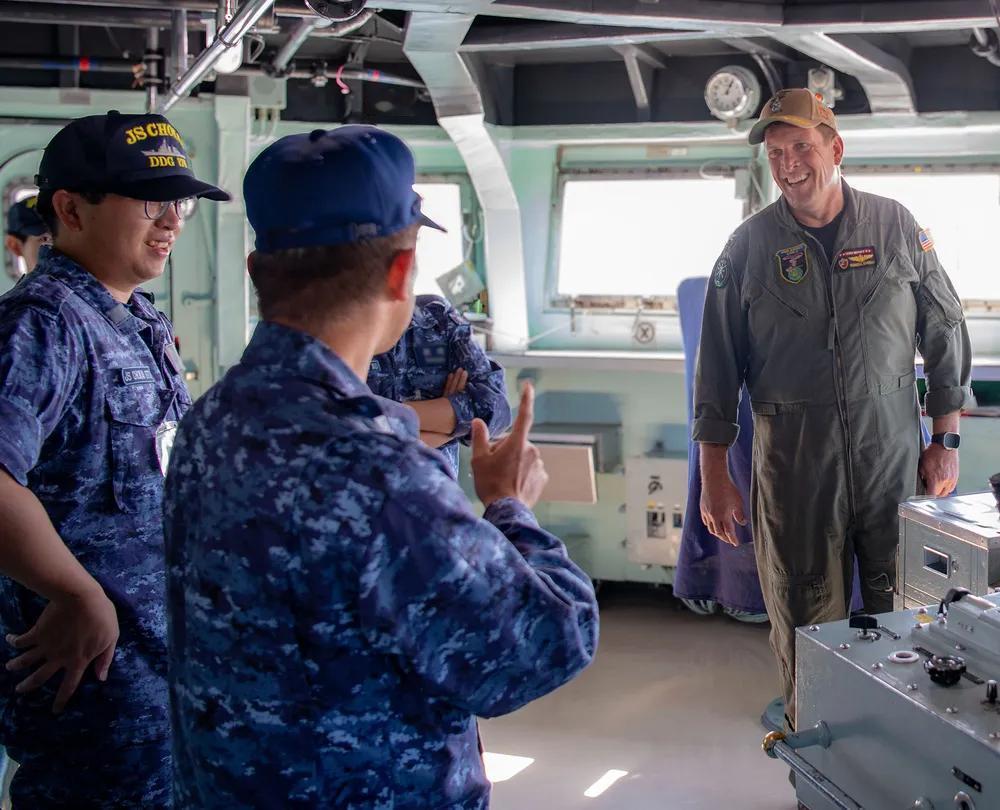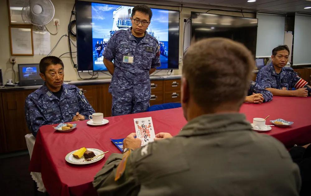 在美军眼里,日军逐渐由“配角”变成“主角”。 2025年10月28日,美军两栖攻击舰“埃塞克斯”号(LHD 2)指挥官拉塞尔·埃弗雷特上尉参观日本海上自卫队的金刚级导弹驱逐舰“鸟海号”(DDG-176)。“埃塞克斯”号在圣地亚哥海军基地作为“鸟海”号的接待舰。埃塞克斯号的驻港地在圣地亚哥,目前正在进行维护期,以升级和翻新船上多个关键系统。 鸟海号是金刚级的第四艘舰,配备宙斯盾海基反导系统,其设计基于伯克级驱逐舰Flight-1构型,并搭载了专为本级舰优化的OYQ-8作战系统。作为日本海上自卫队的主力舰艇之一,鸟海号近期已启程前往美国进行改装,计划整合美国BGM-109“战斧”巡航导弹系统,以提升远程精确打击能力。 此次改装预计将持续约一年,完成后鸟海号将具备发射“战斧”Block IV或Block V版本导弹的能力,射程可达约1600公里,可执行反舰、对地攻击等多种任务。