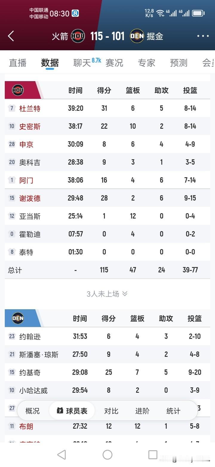 早这么打就不会0胜5负的高端局了!杜兰特 31分6板5助,三分6中5,火箭大胜掘金。 本场申京终于不再头脑发热了,确立了以杜兰特为核心的打法,同时谢泼德手感火热,拿28分,三分9中6,还有3断2帽。 你一个中锋好好打你的内线,当什么组织中锋,还是长时间控球支配球! 所以本场申京出手只有9次但是火箭赢了。没机会不要浪头就行。