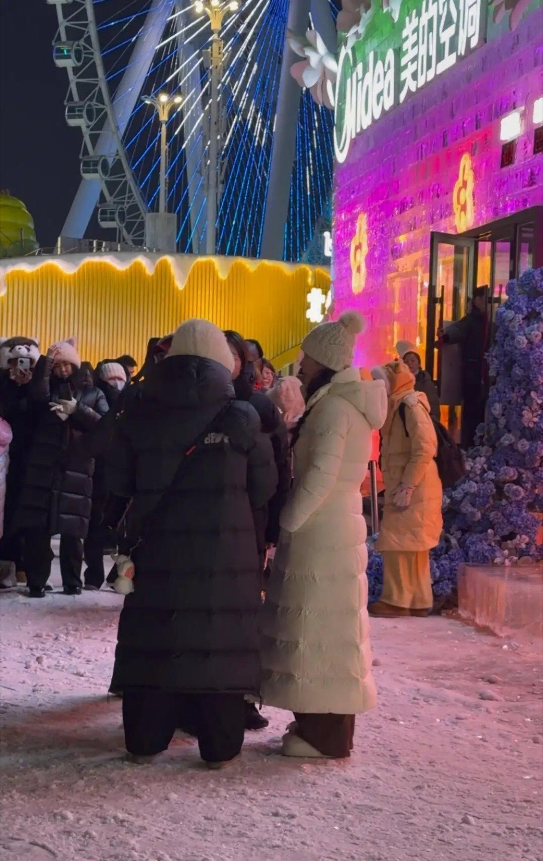 12月20日,马思纯在哈尔滨冰雪大世界被偶遇,她身着白色长款羽绒服,扎双麻花辫,清新甜美宛如少女。