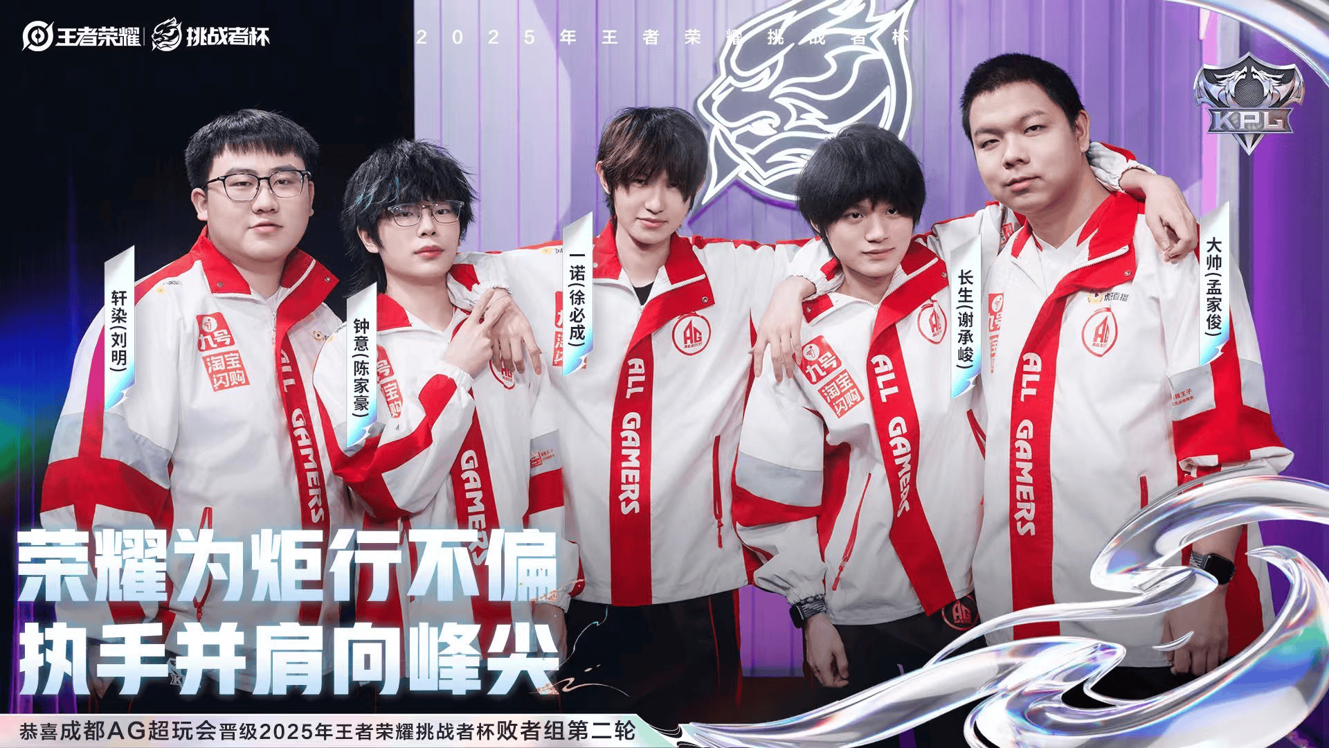 恭喜成都AG超玩会晋级2025王者荣耀挑战者杯败者组第二轮!