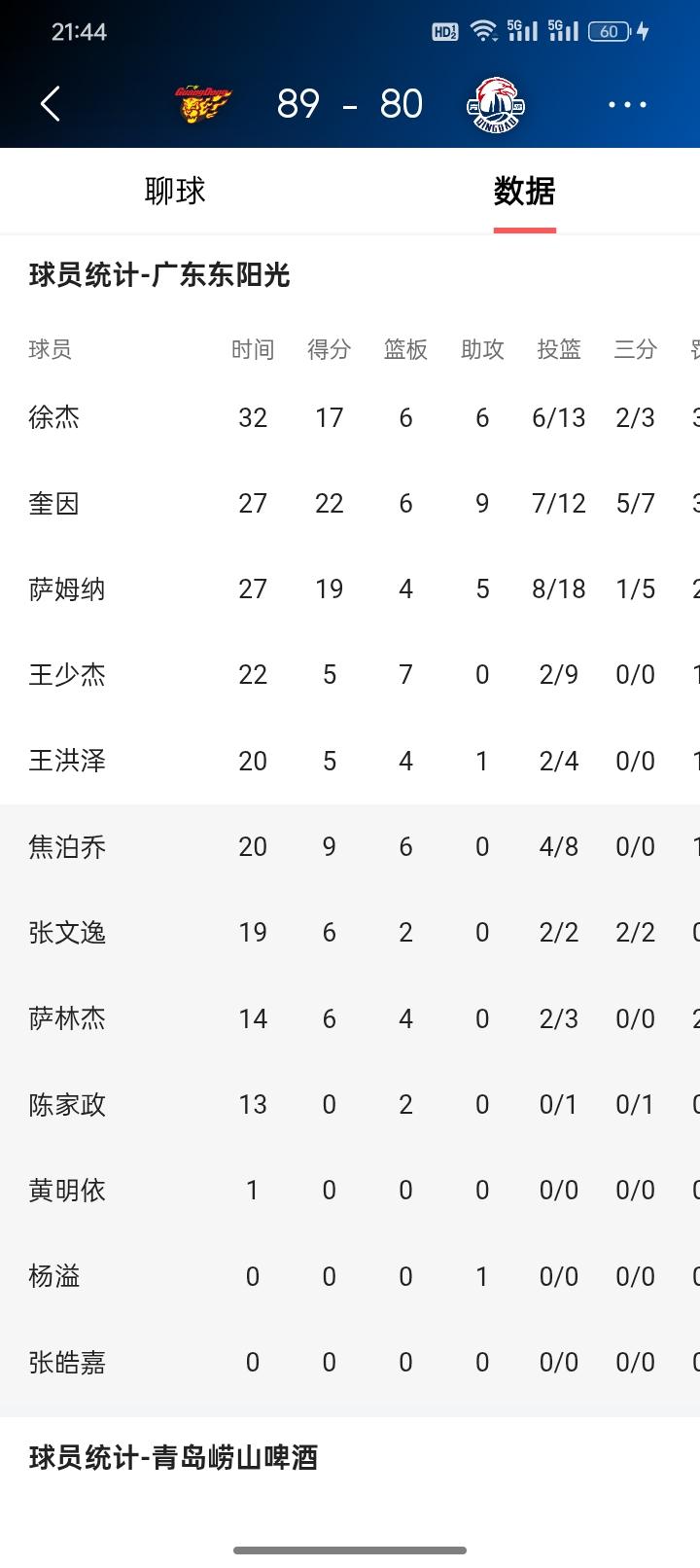 广东队主场击败青岛队, 喜获四连胜,目前一场都还没有输过! 但又有谁想到,眼角伤一直都还没有好的徐杰,现在已经成了广东队当中的“劳模”没有之一。 为什么呢?因为他已经连续三场上场时间都超过了32分钟,成了广东队上场时间最多的球员,本场对阵青岛队,他拿到了17分+6篮板+6助攻的数据,发挥非常的全面,很多人不知道,现在徐杰有项记录已经是广东队队史记录的第二名,可见现在的广东队,徐杰已经是绝对的核心之一!徐杰鬼魅传球 徐杰绝杀