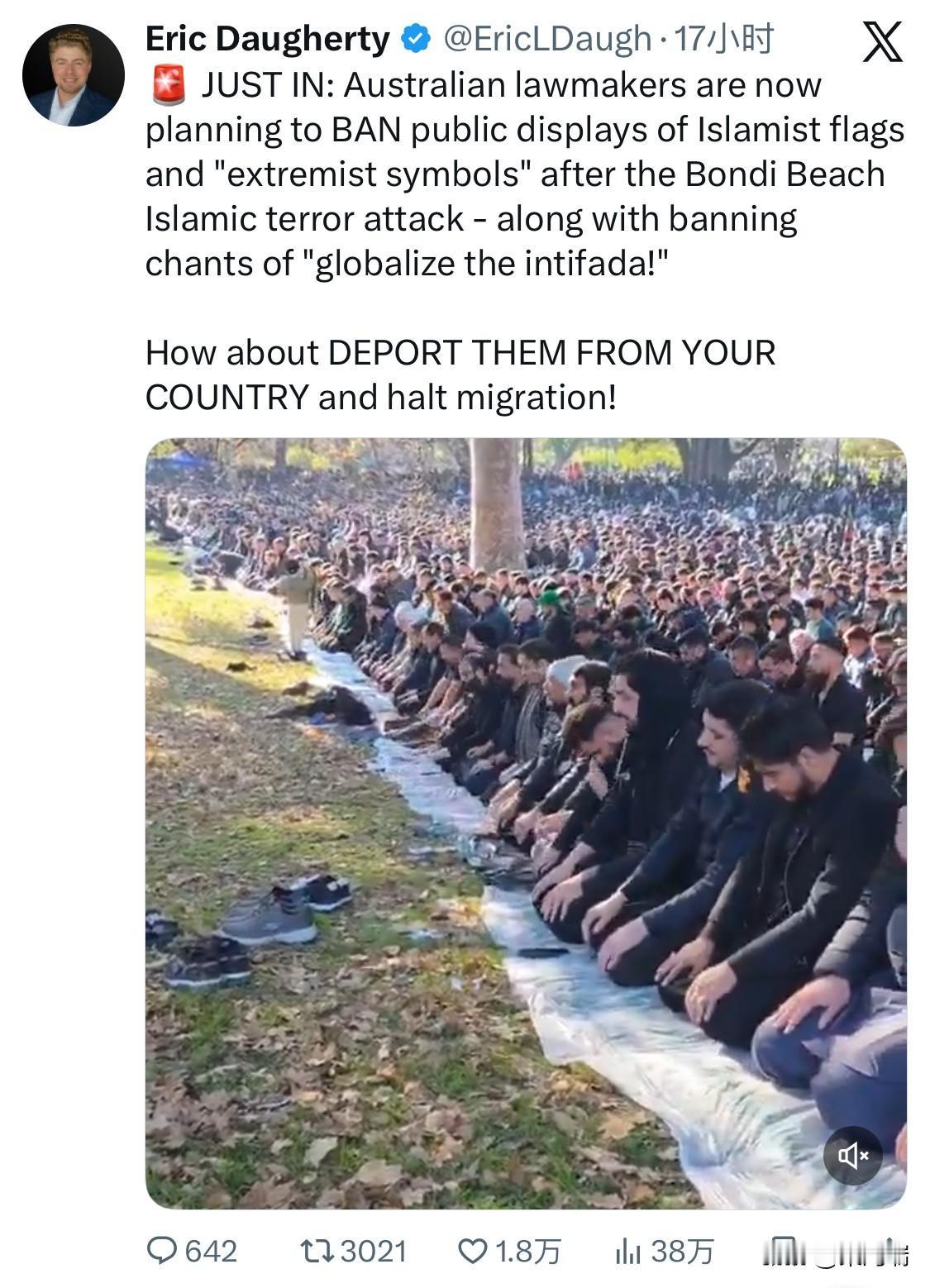 最新消息:在邦迪海滩发生伊斯兰恐怖袭击后,澳大利亚立法者正计划禁止公开展示伊斯兰旗帜和“极端主义符号”,同时禁止高喊“全球起义!”