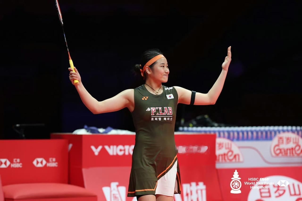 安洗莹赛季11冠! 12月21日,在2025年世界羽联年终总决赛女单决赛中,安洗莹用时95分钟21-13、18-21、21-10击败中国选手王祉怡,夺得冠军!这是安洗莹本赛季夺得的第11个女单冠军,同时创造了年度奖金最高的历史记录! 安洗莹本次比赛夺冠历程: 小组赛:21-16、8-21、21-8 瓦尔达尼 小组赛:21-9、21-6 宫崎友花 小组赛:14-21、21-5、21-14 山口茜 半决赛:21-15、21-12 山口茜 决赛:21-13、18-21、21-10 王祉怡 安洗莹,韩国球员,巴黎奥运会女单冠军。